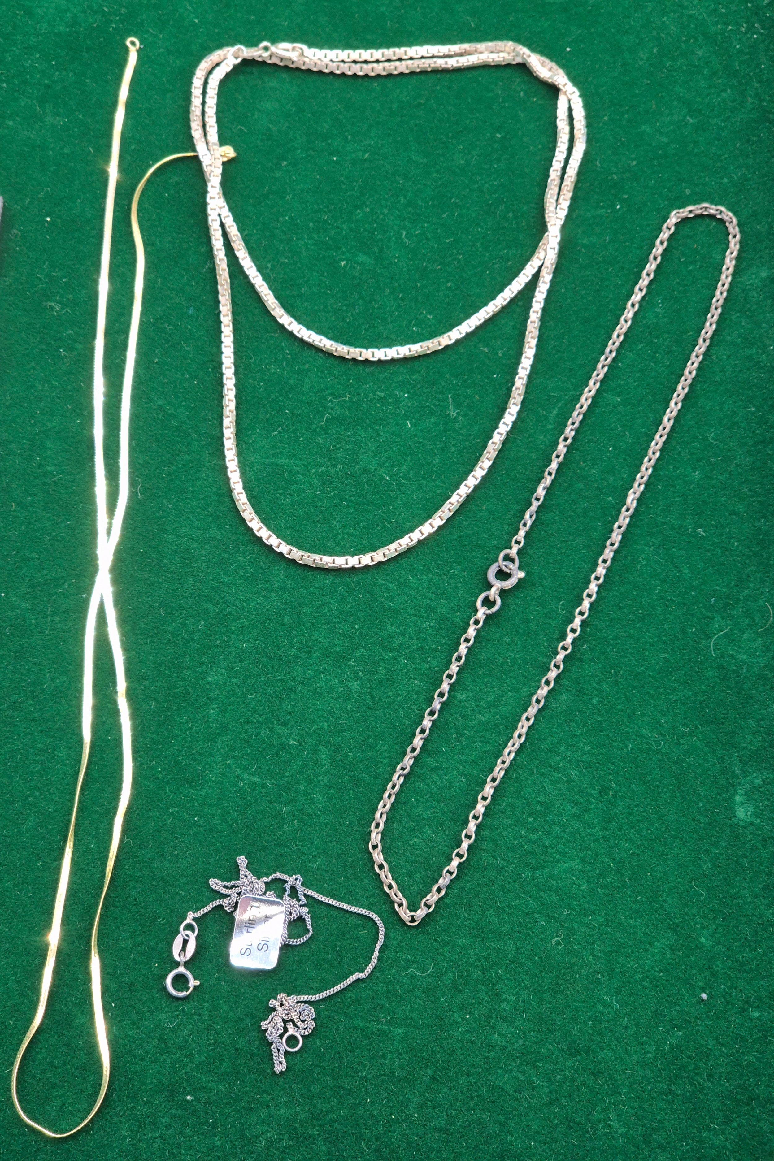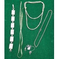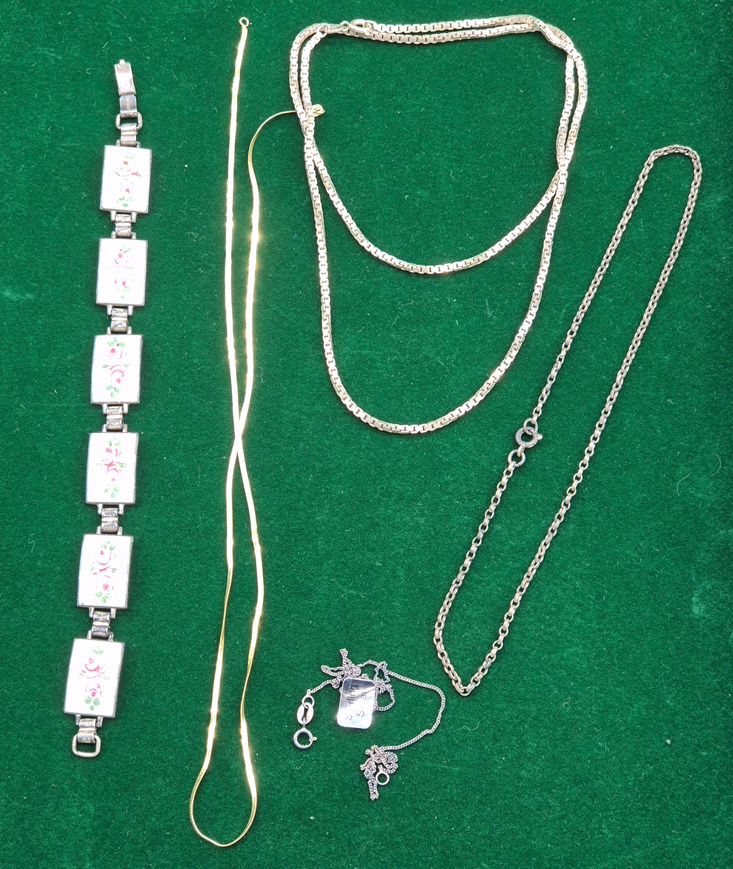 Various jewellery; 9ct yellow gold necklace. Sterling silver and enamel bracelet- having religious scenes to the inside of the panels. The lot also includes three silver necklaces. 1.16Grams-9ct gold.