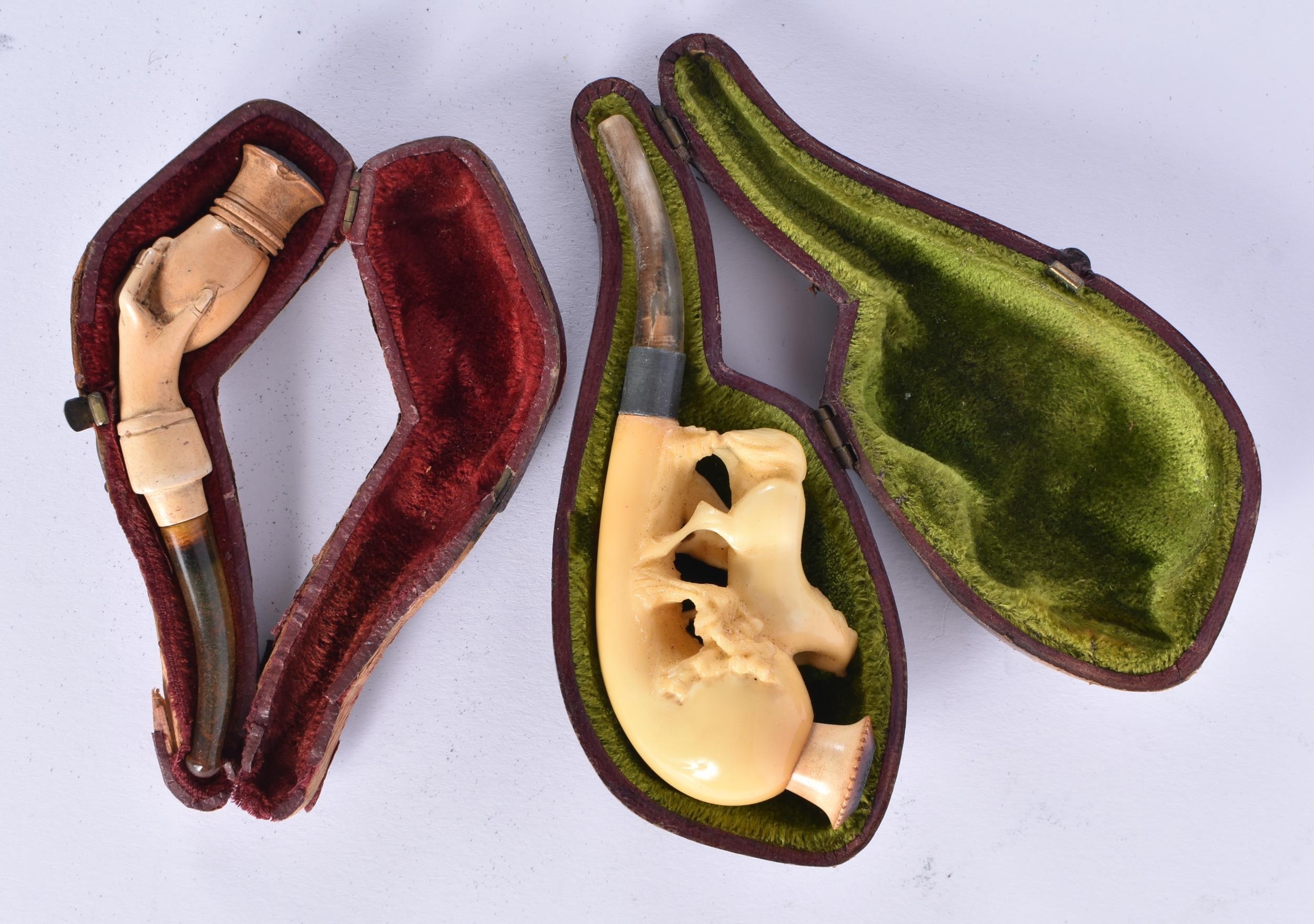 TWO ANTIQUE MEERSCHAUM PIPS. 11 cm wide. (2)