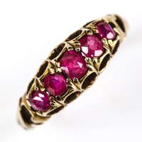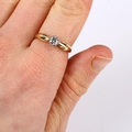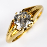 No damage or repairs, diamond relatively bright and white with a couple of internal feathers and black spot inclusions mostly only visible through a loupe, settings very lightly abraded, marks clear on outside of shank