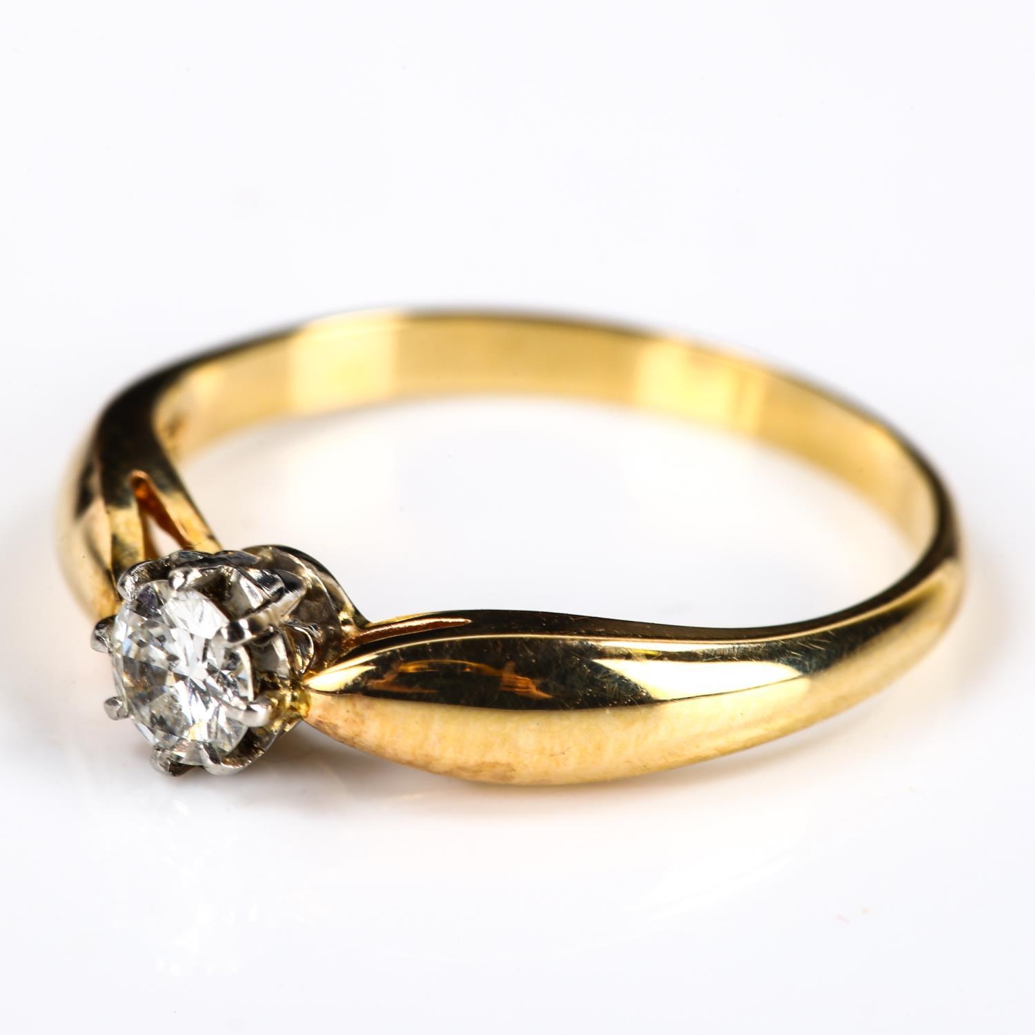A Continental 18ct gold 0.25ct solitaire diamond ring, plain 8-claw setting with modern round brilliant-cut diamond, setting height 4.9mm, size N, 2.4g