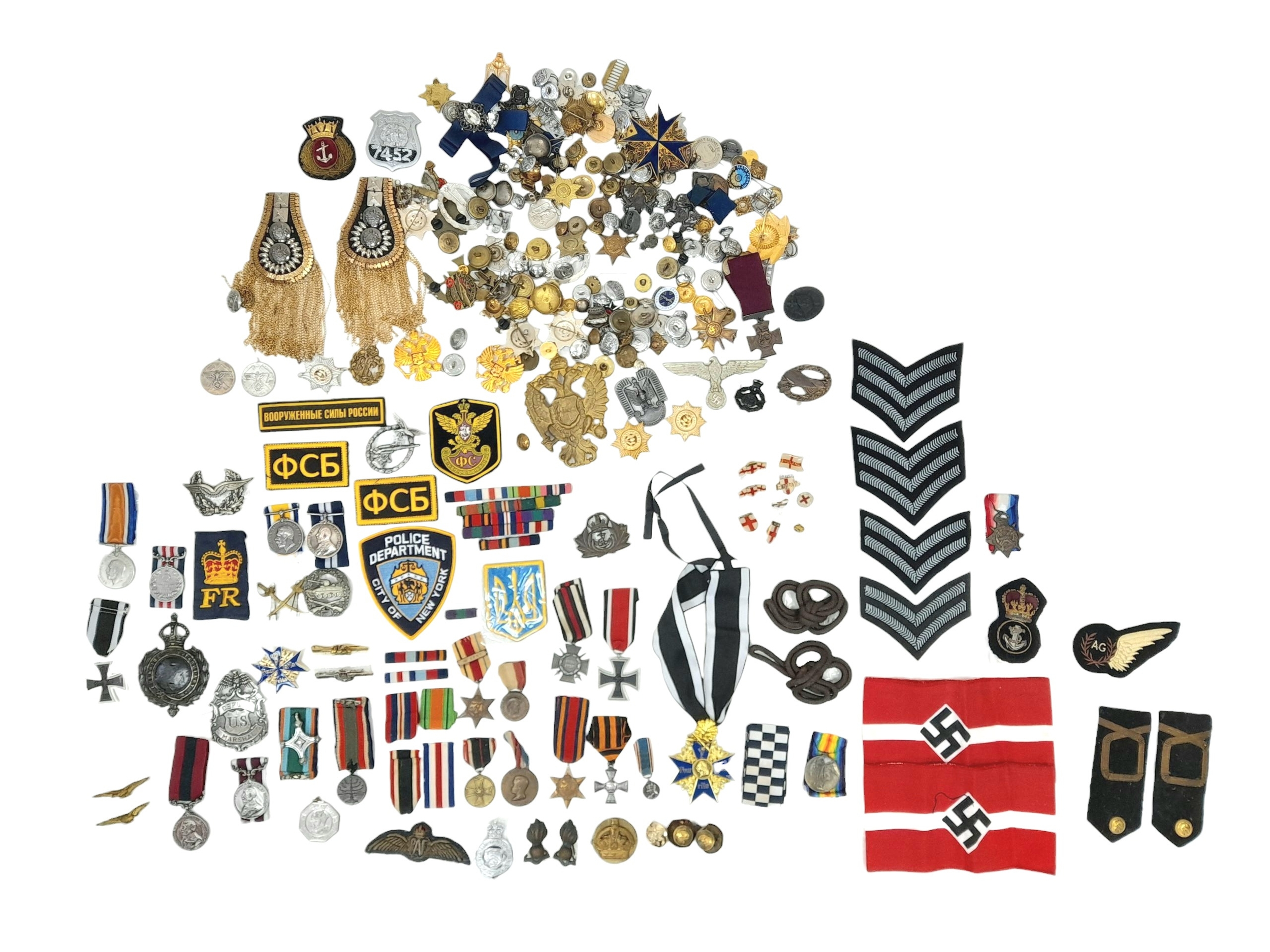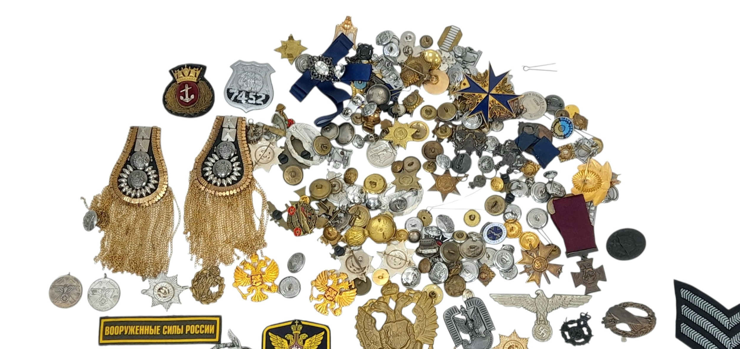 A Huge Collection of Reproduction Military Metal and Textile Badges. These were used by an amateur dramatics society for plays etc.
