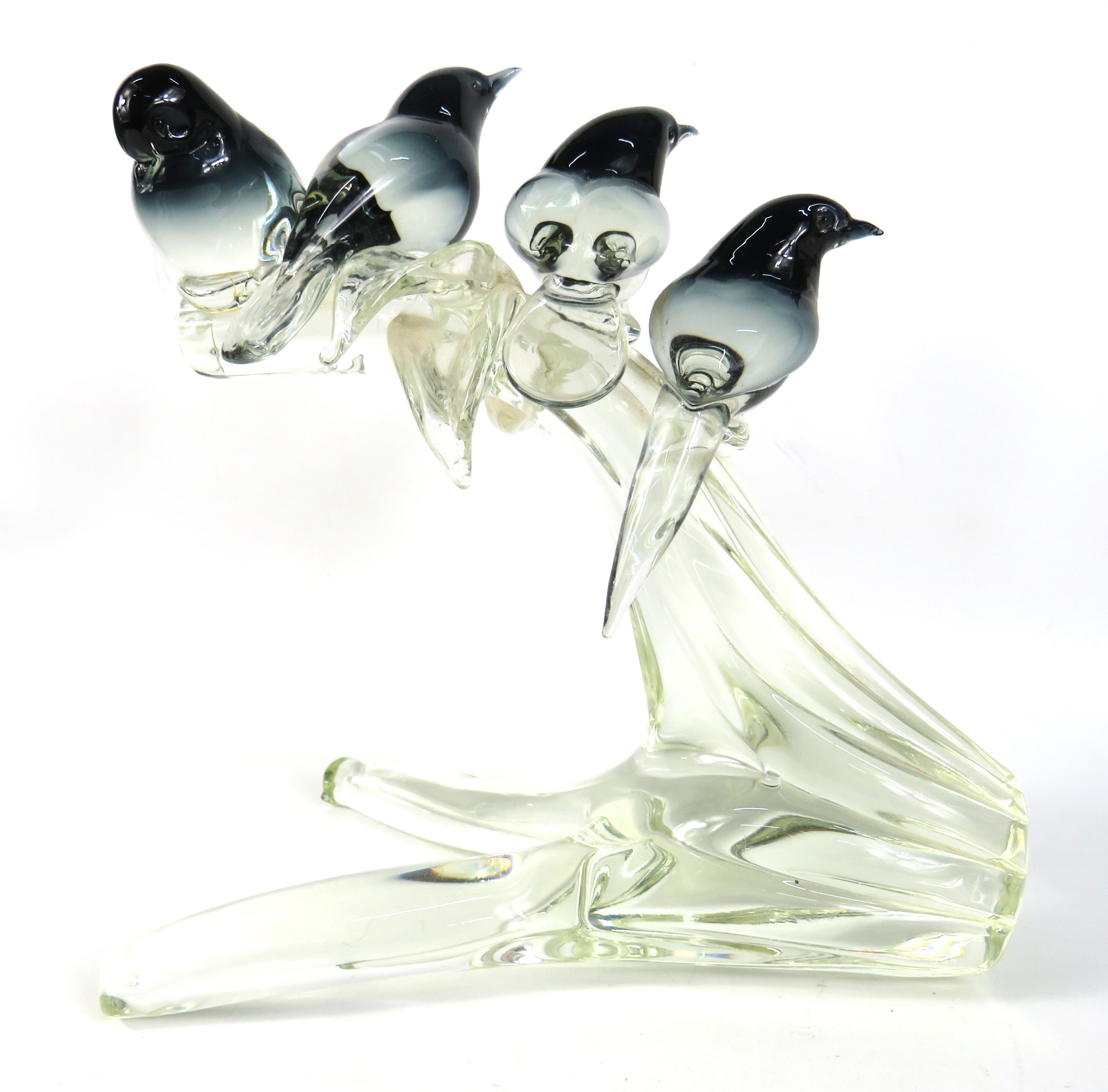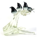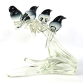 Glass bird figurine group on branch - 30cm x 25cm x 18cm