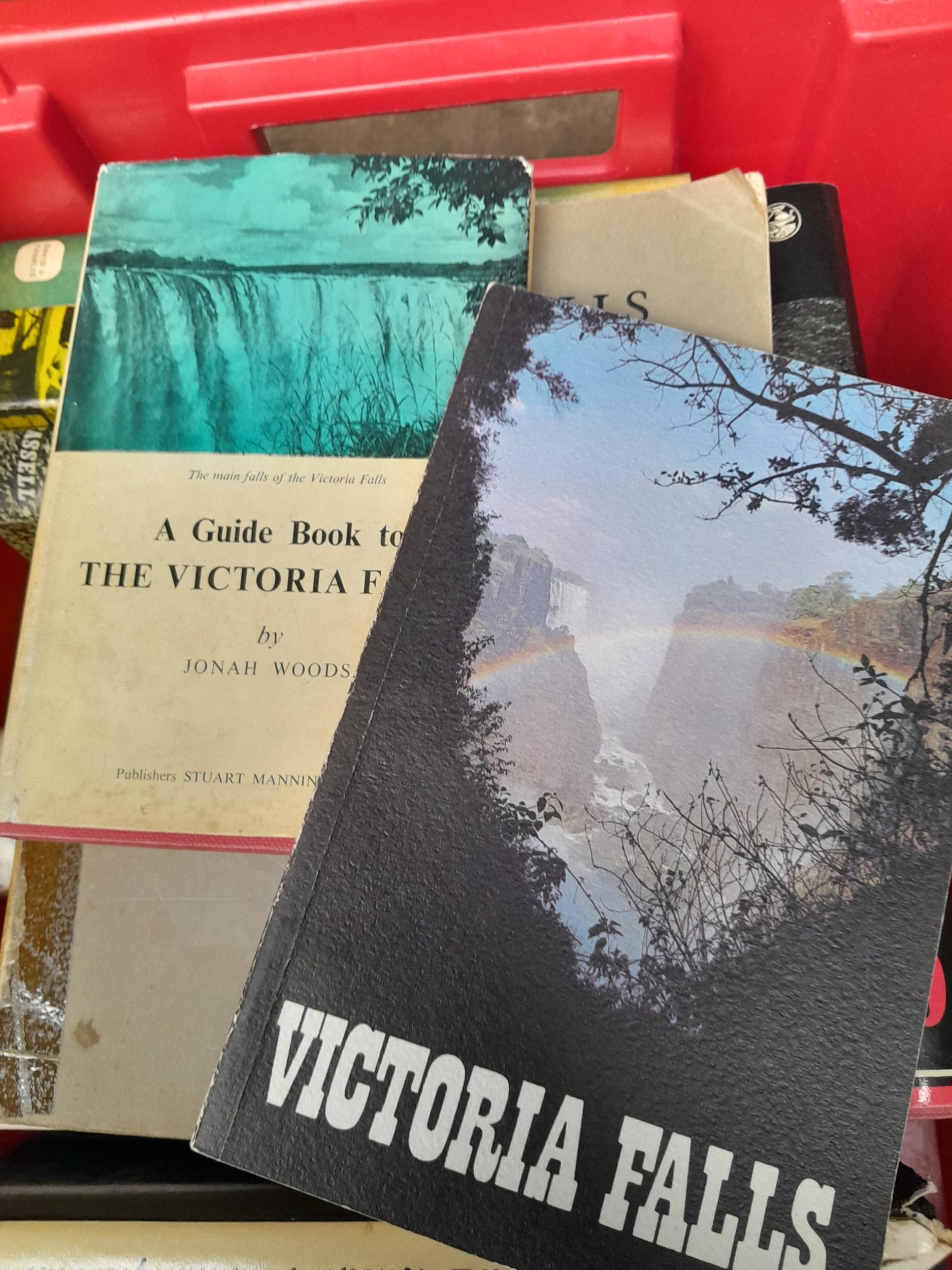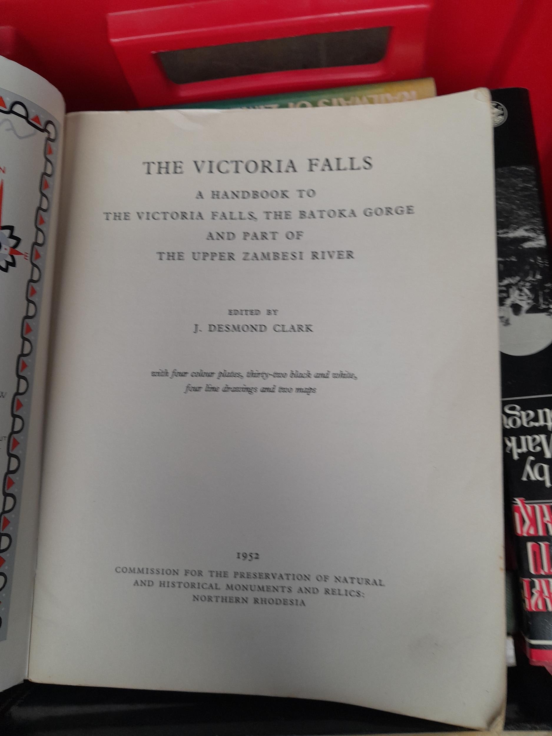 Box of books : mainly Africa related including Victoria Falls by Desmond Clark 1952 softback