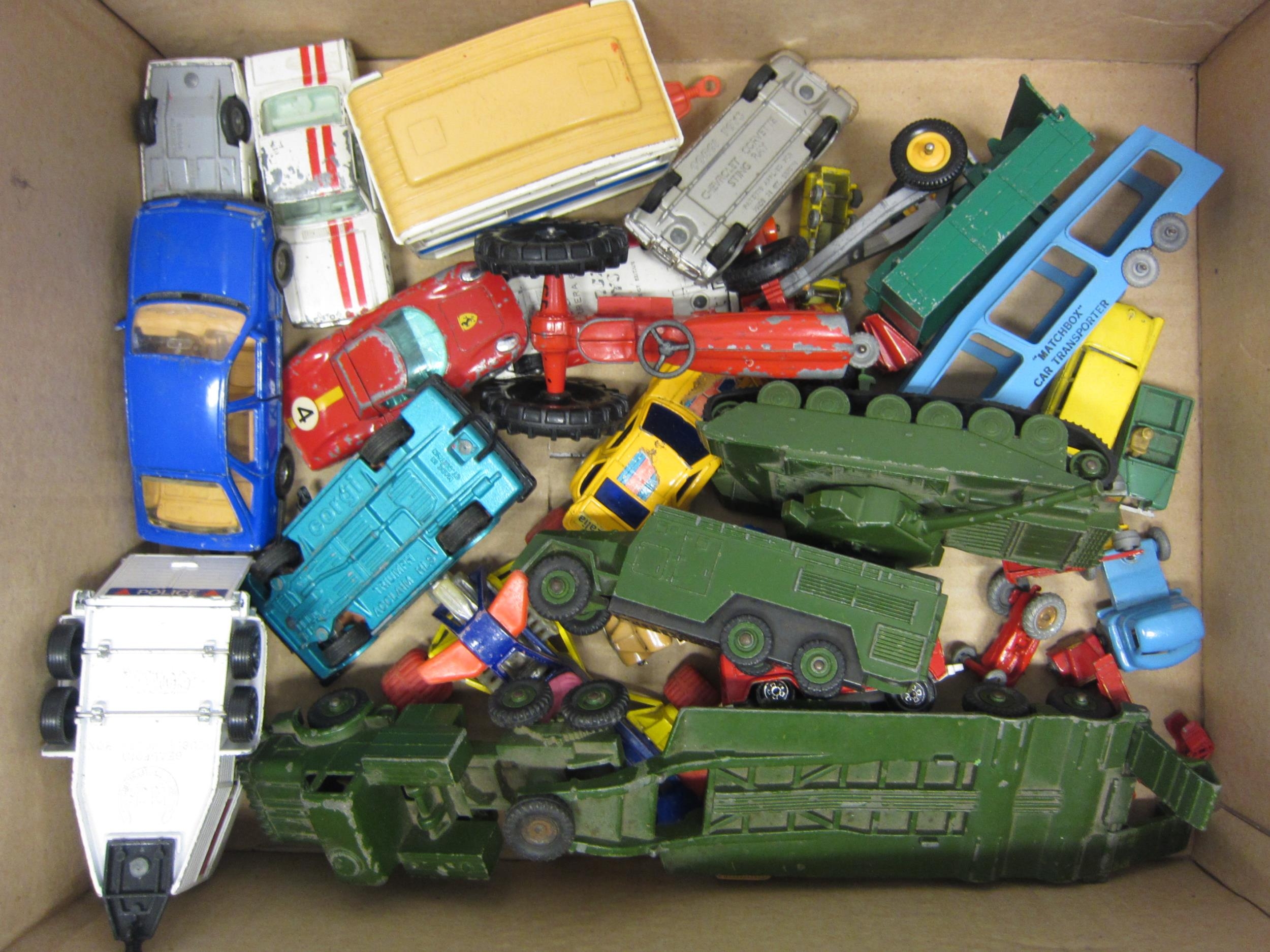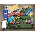 Assorted loose diecast vehicles including Dinky Military, Lesney Matchbox Series, Corgi, etc
