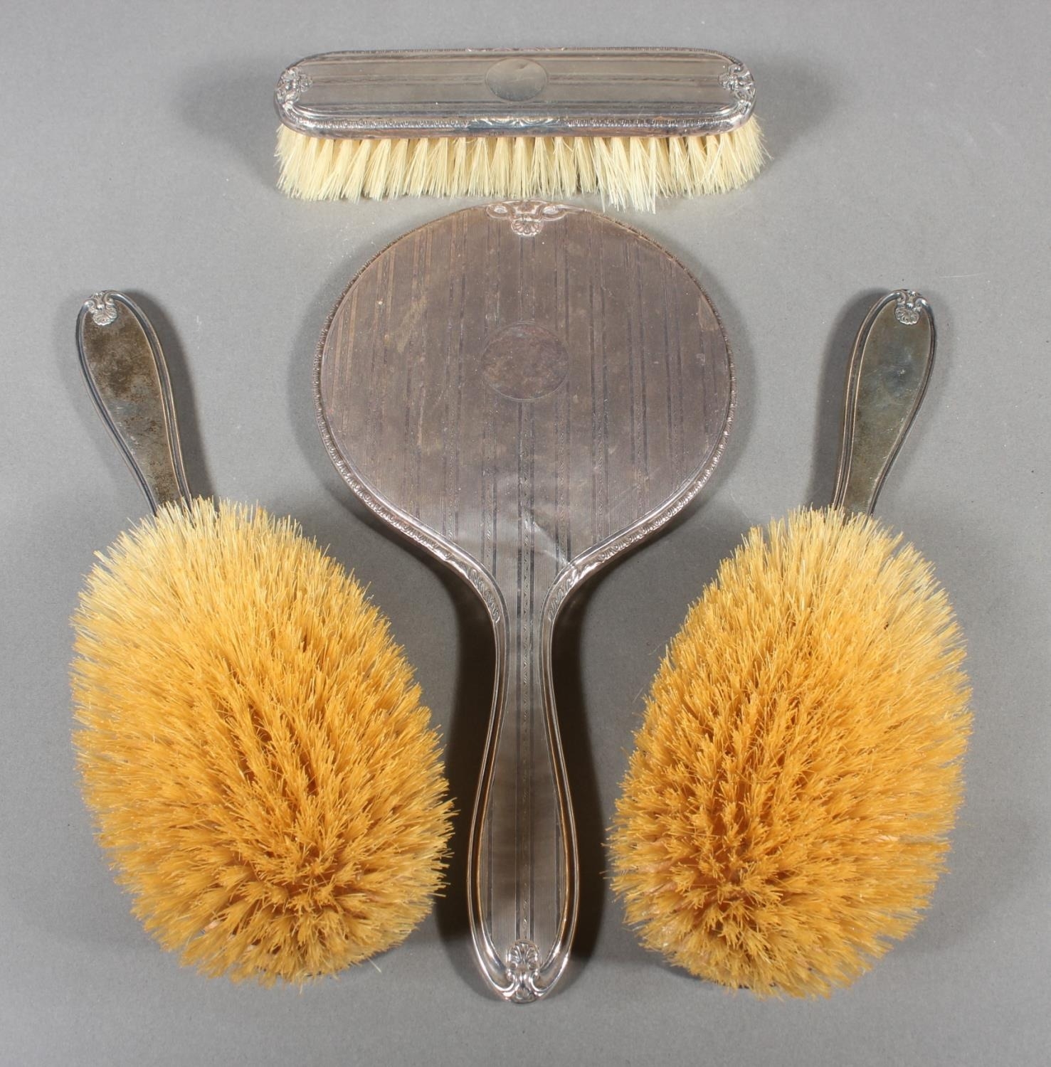Silver backed four piece vanity set, Walker & Hall, Birmingham,