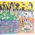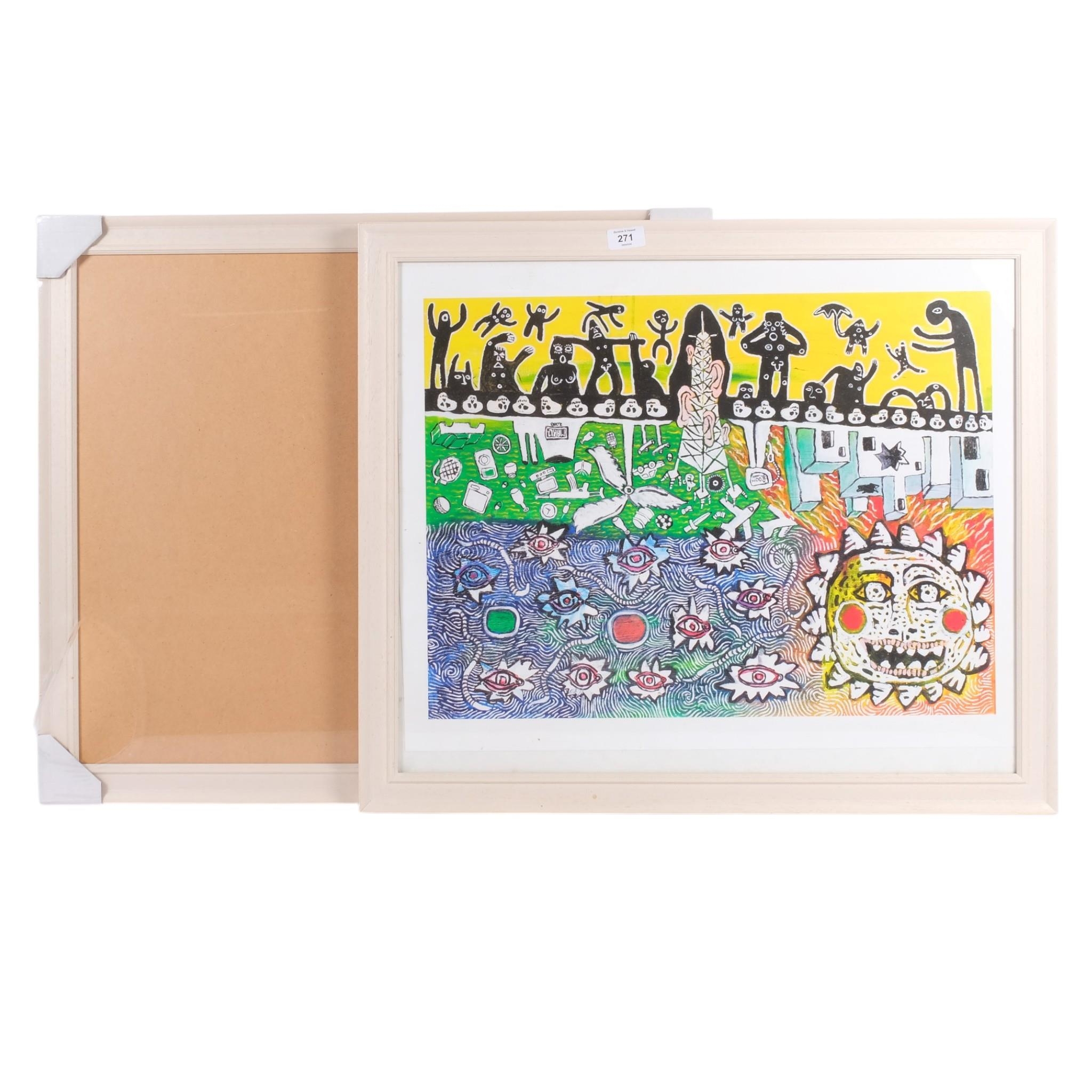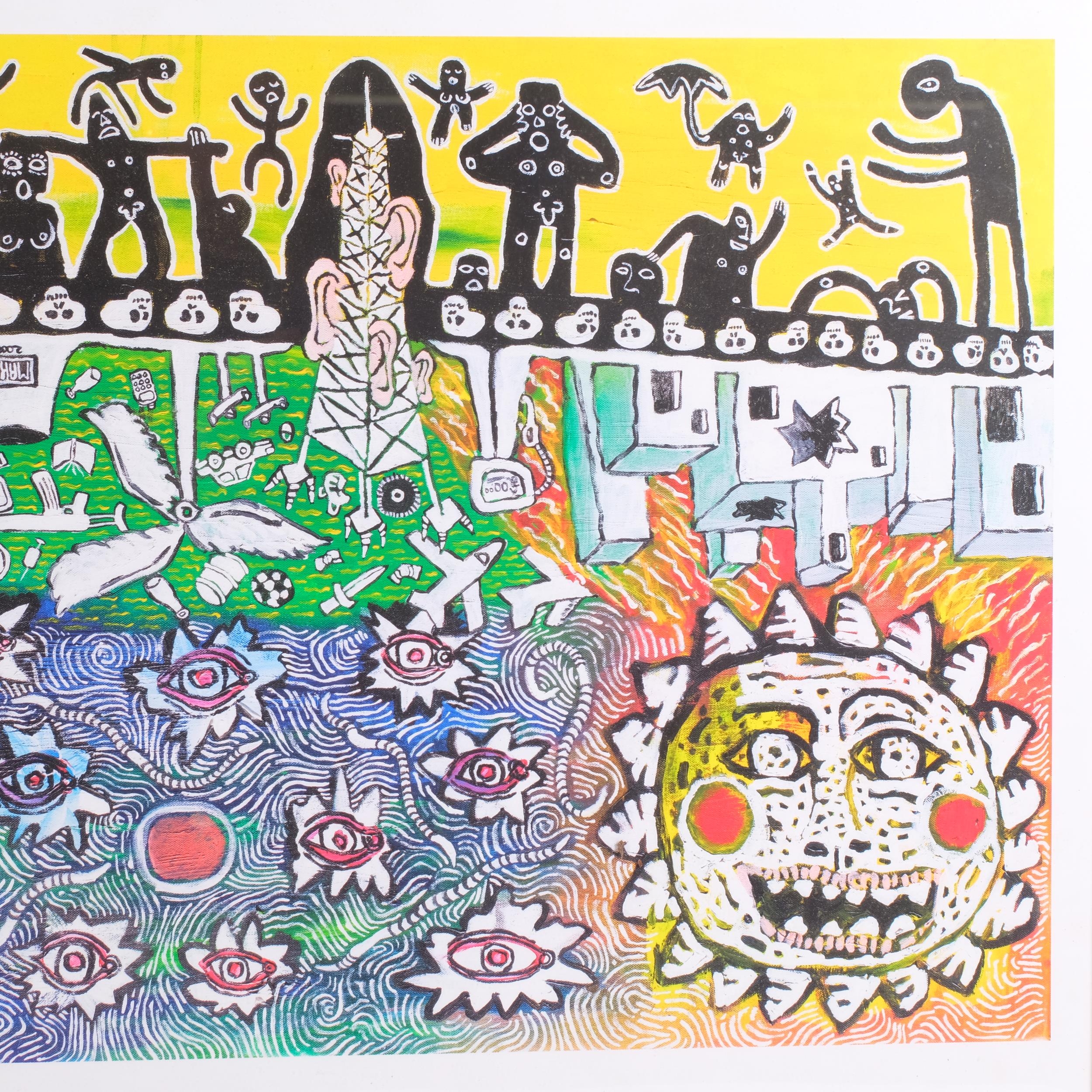 Contemporary abstract poster print, framed, overall 61cm x 71cm, together with a matching frame