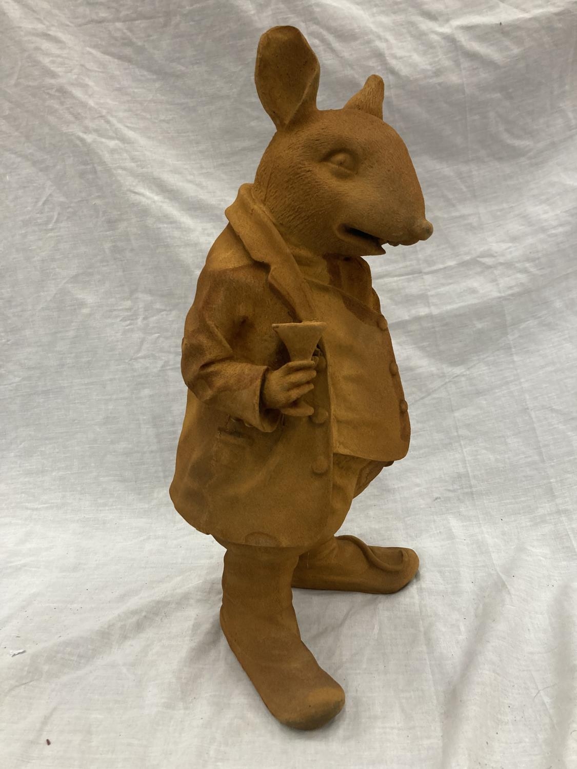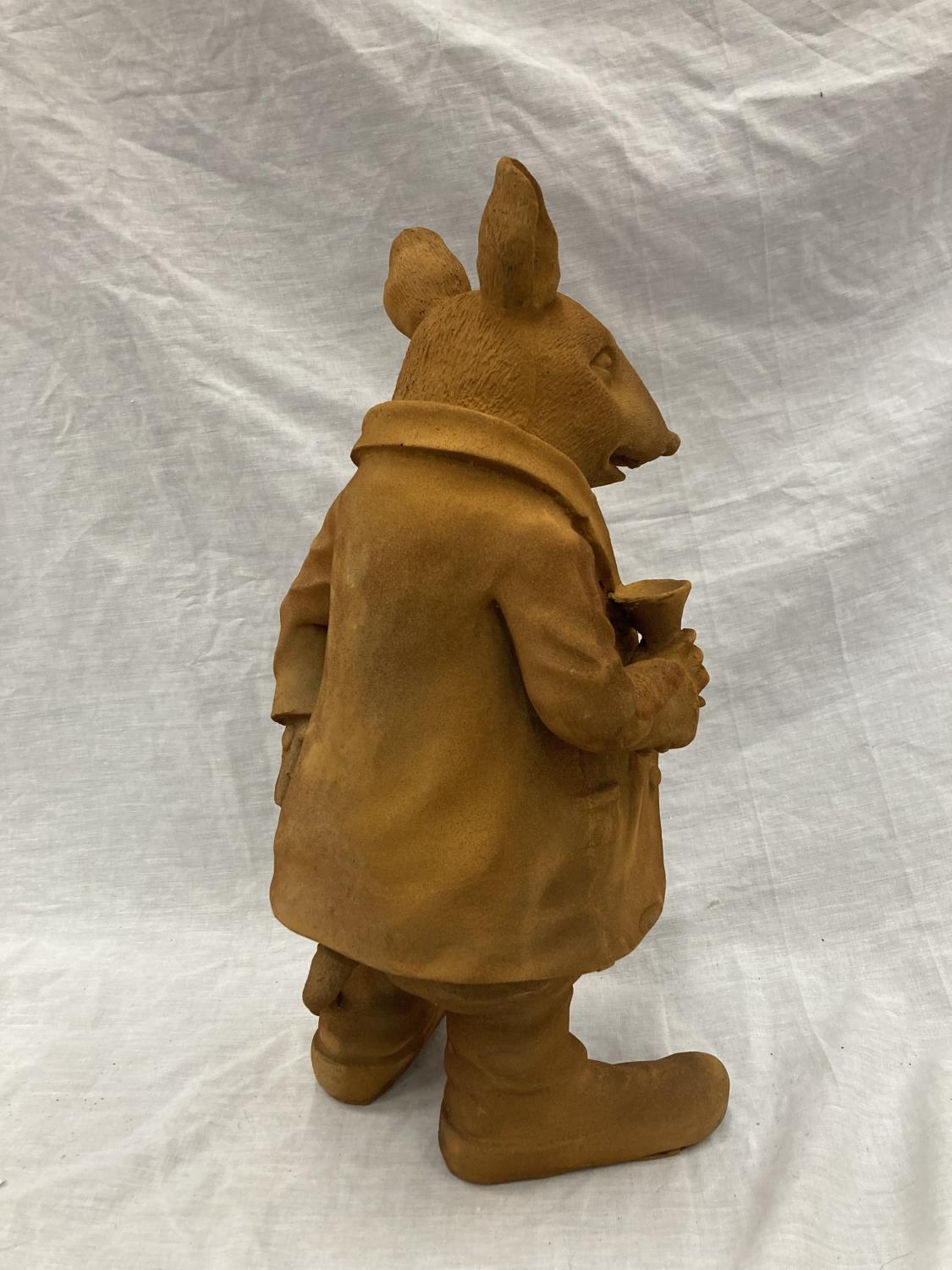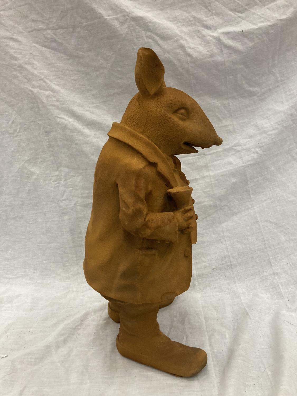 A CAST RUSTY GARDEN 'MR RATTY' - HEIGHT 41CM