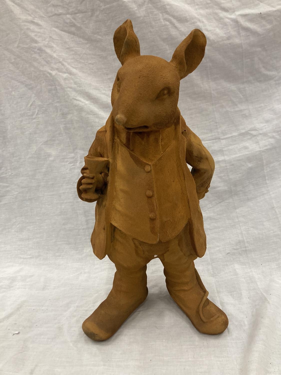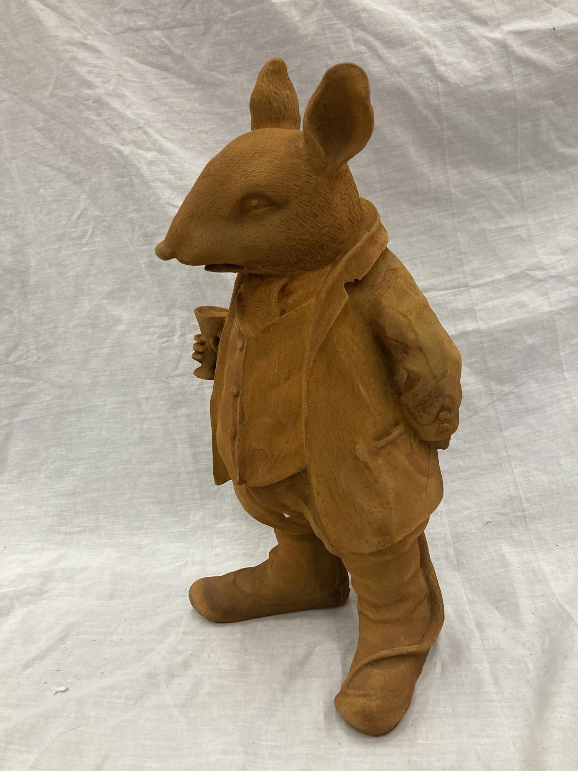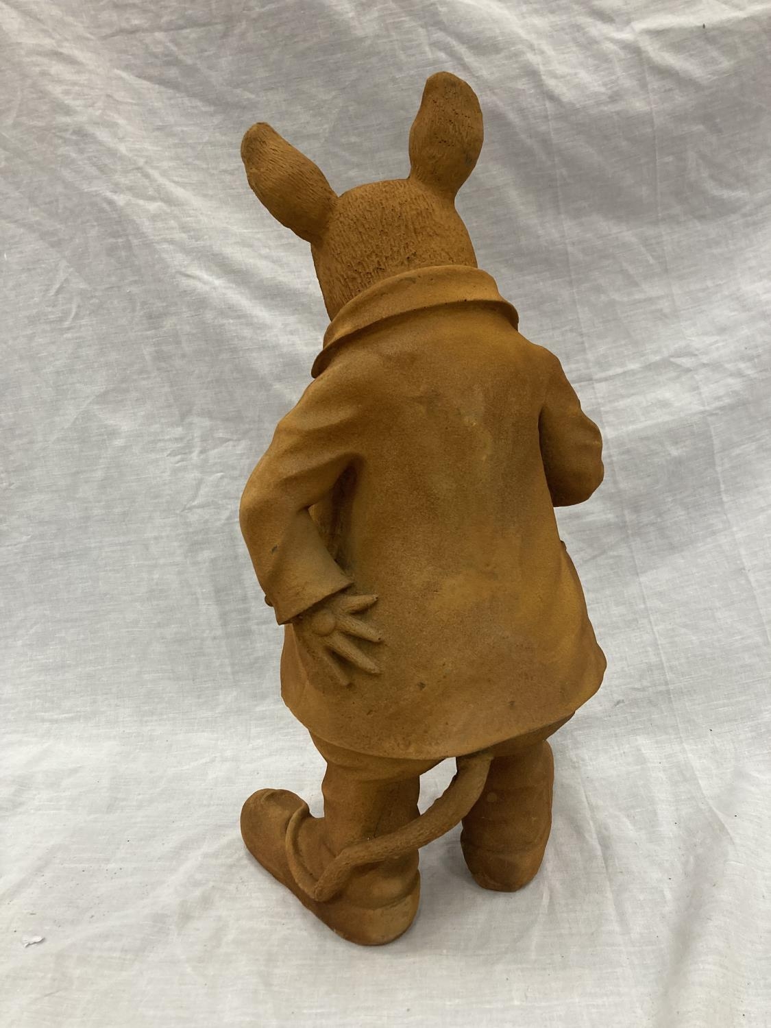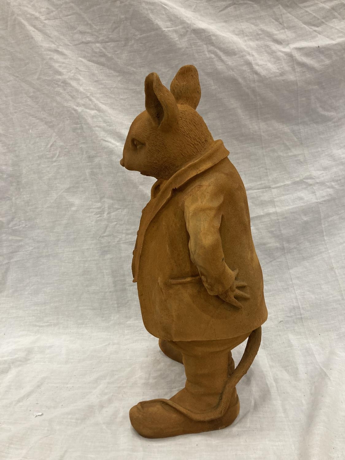 A CAST RUSTY GARDEN 'MR RATTY' - HEIGHT 41CM