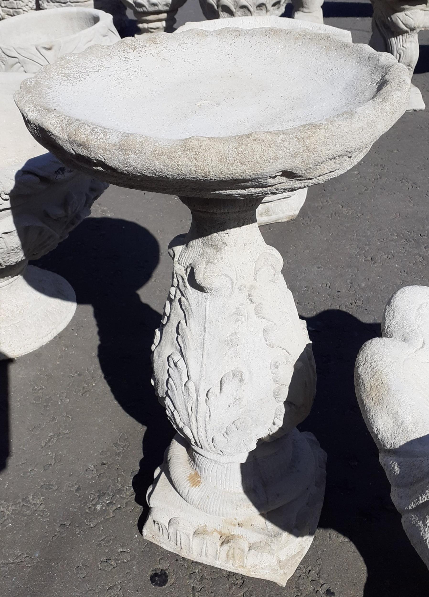 A two piece bird bath with decorated pillar H59 x W35cm approx