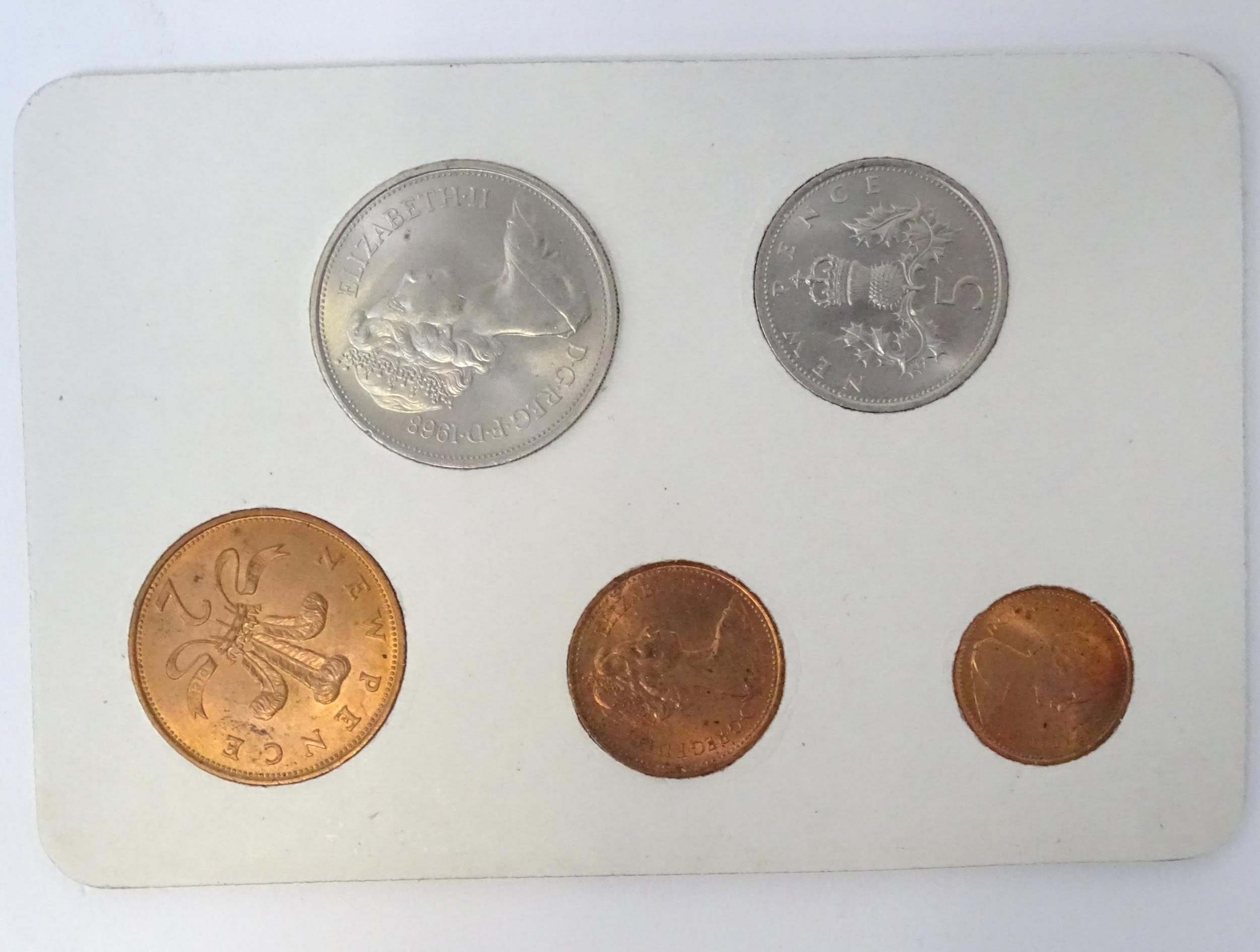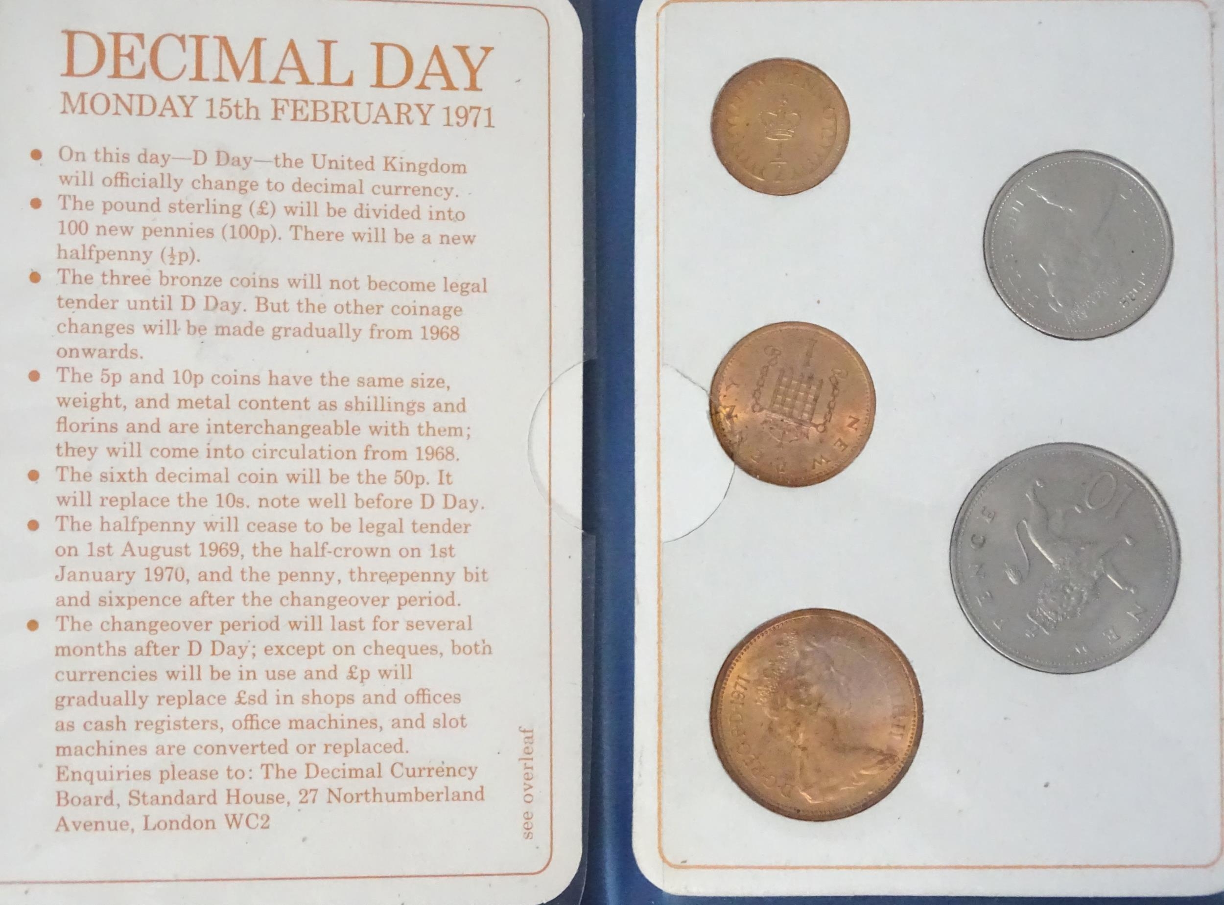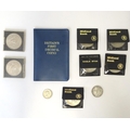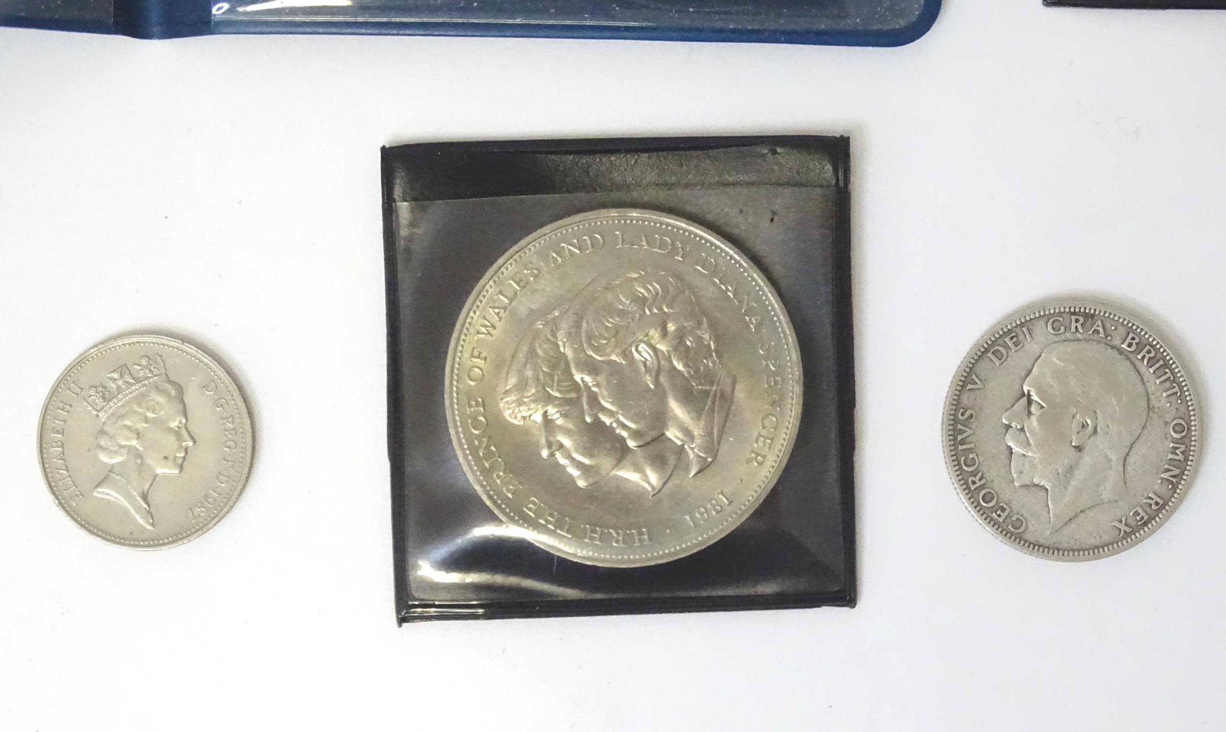 A quantity of 20thC coins, comprising a 1929 George V florin, seven Queen Elizabeth II crowns, a 1987 5p piece and a 1971 decimal set.