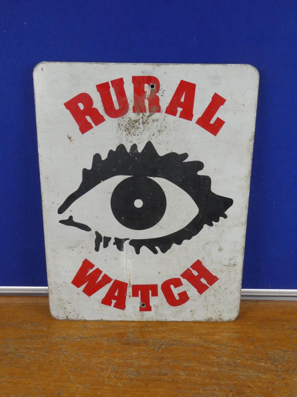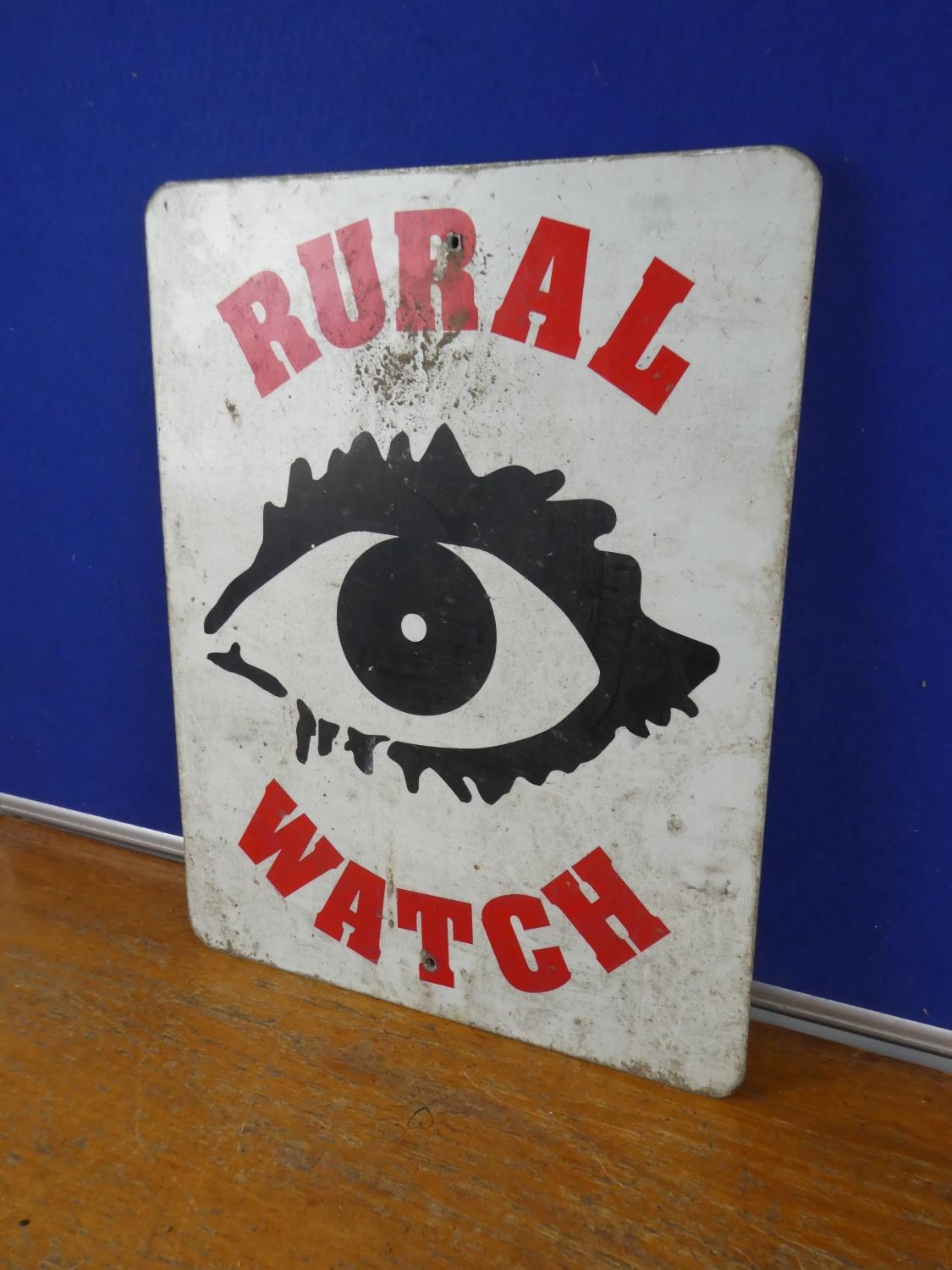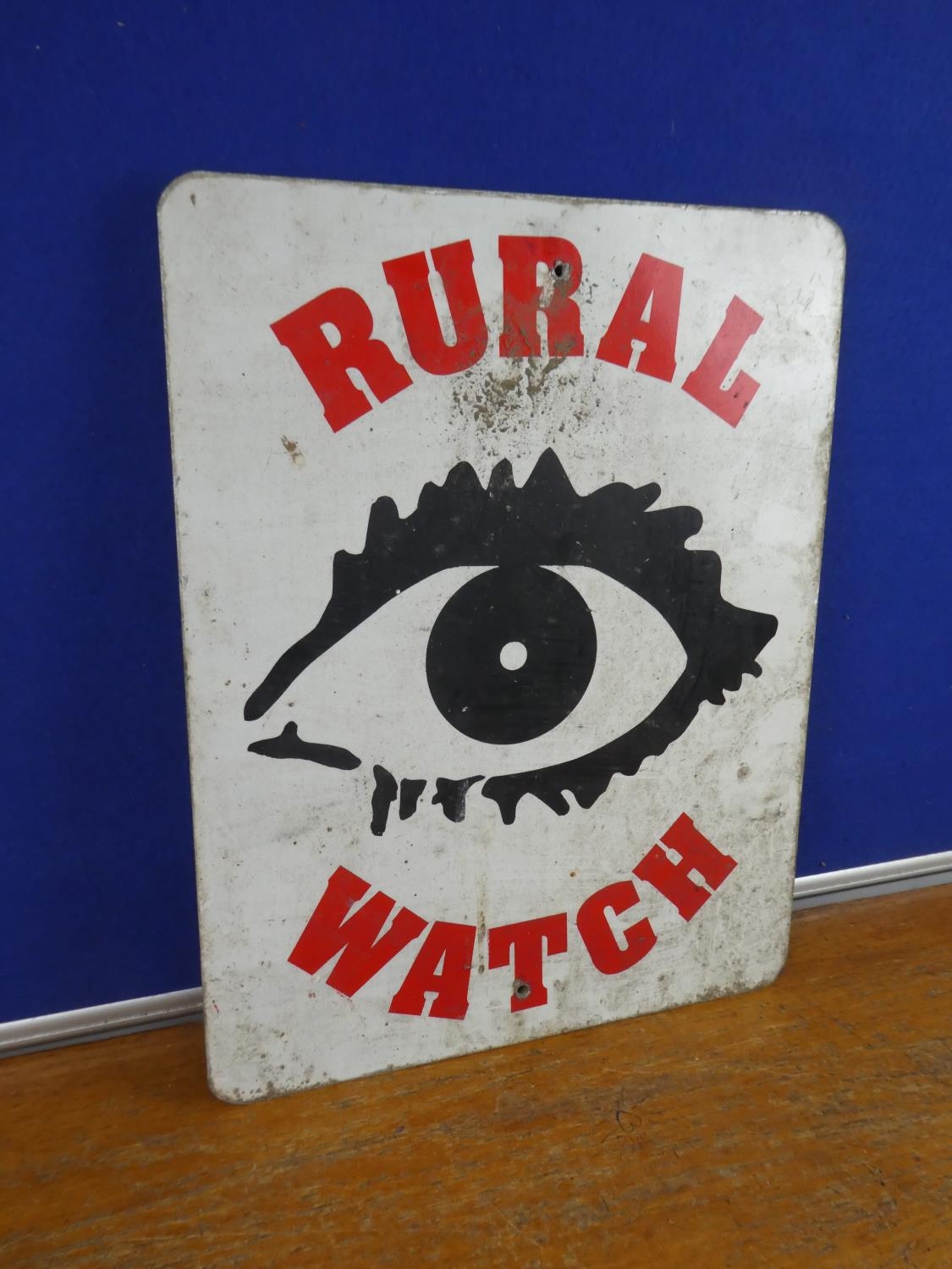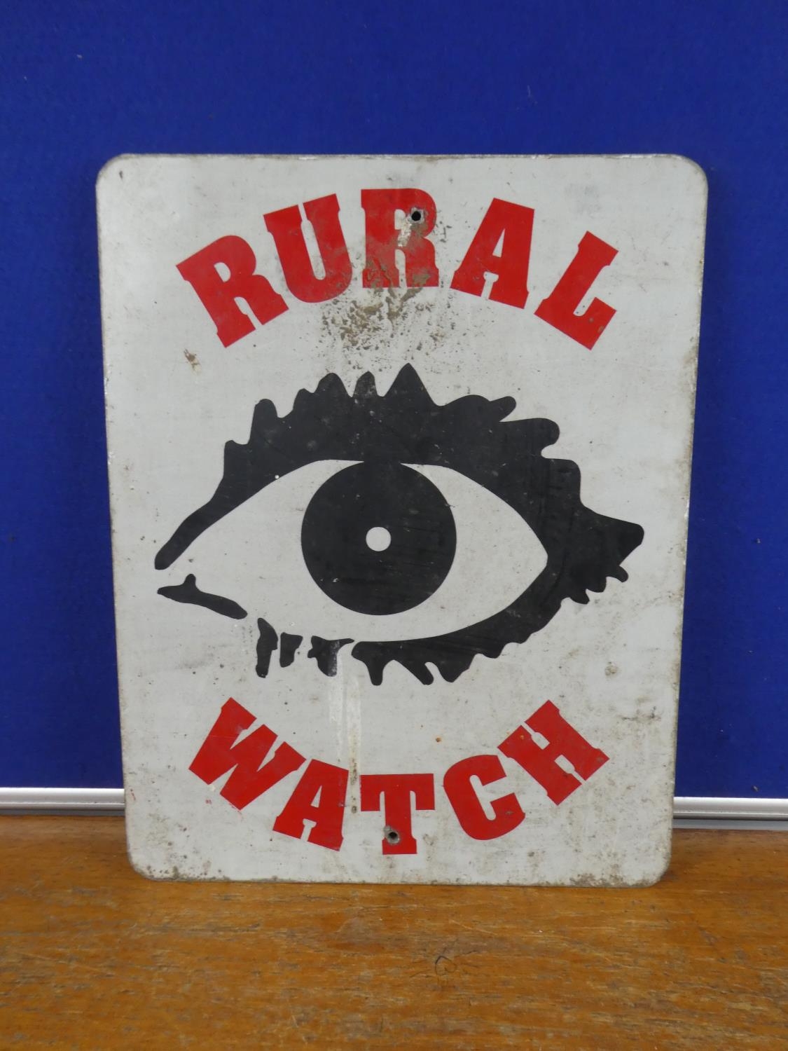A vintage advertising sign 'Rural Watch', measuring 45x35cm.