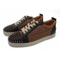 Christian Louboutin Louis junior spikes flat veau velours black sneakers / trainers, size 42.5, with bags, laces and box