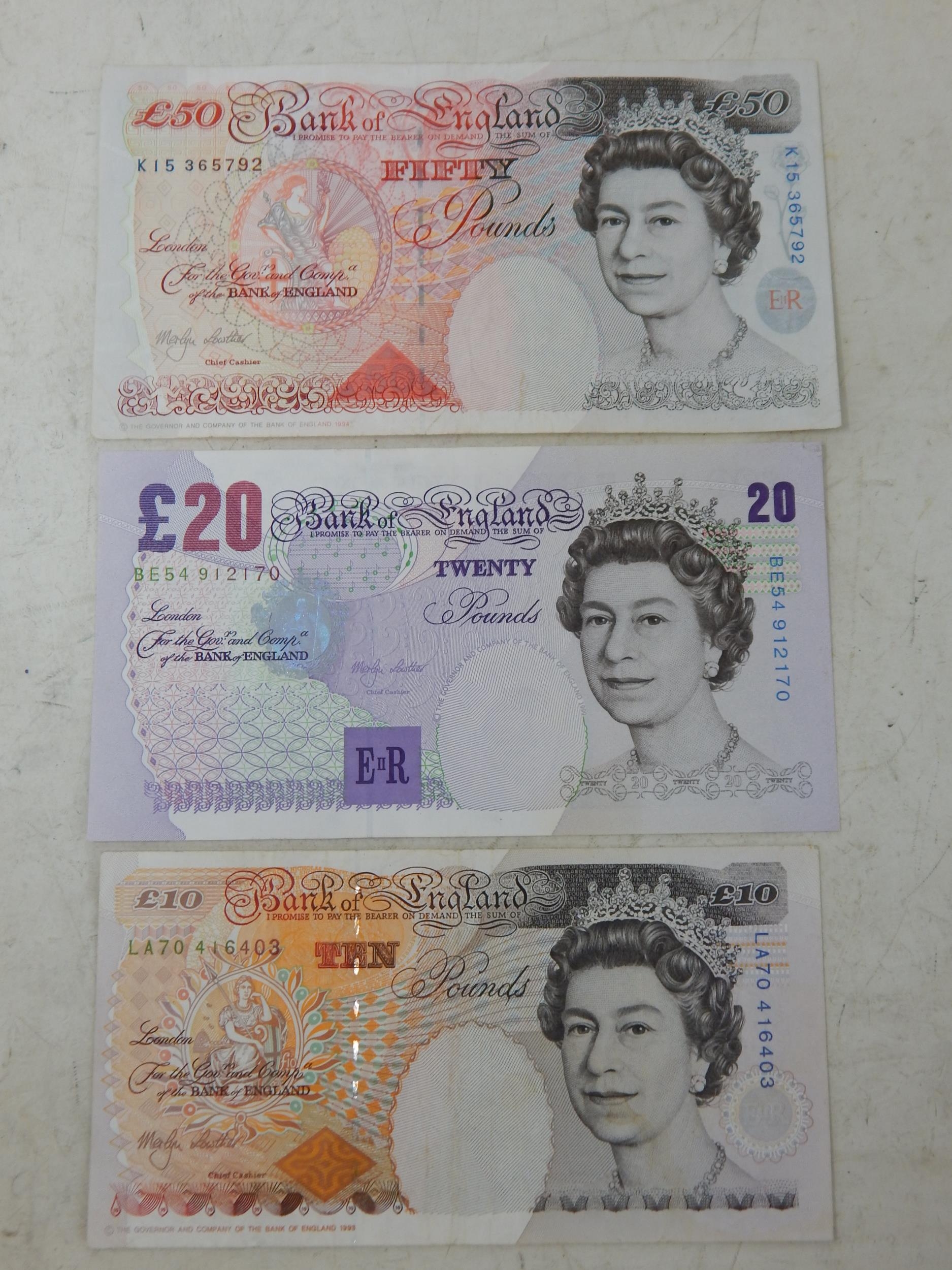 Set of pre-polymer banknotes £50, £20 and £10 (lot)