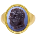 ANTIQUE HARDSTONE CAMEO RING, carved with a cameo depicting a men in profile. Size. M. 18.7 grams.