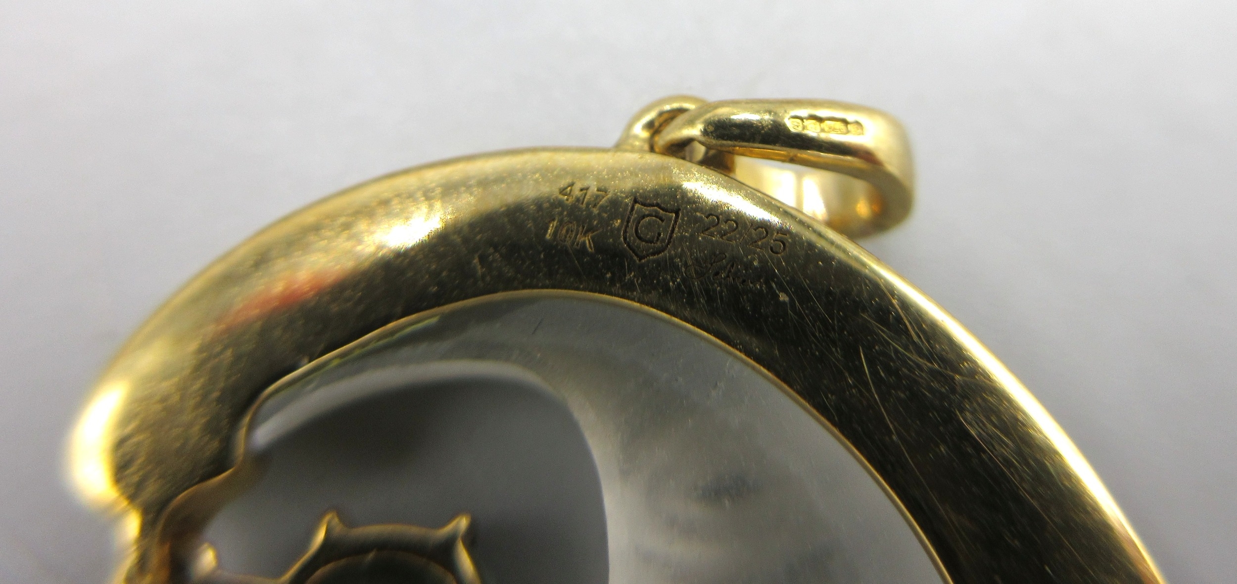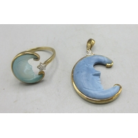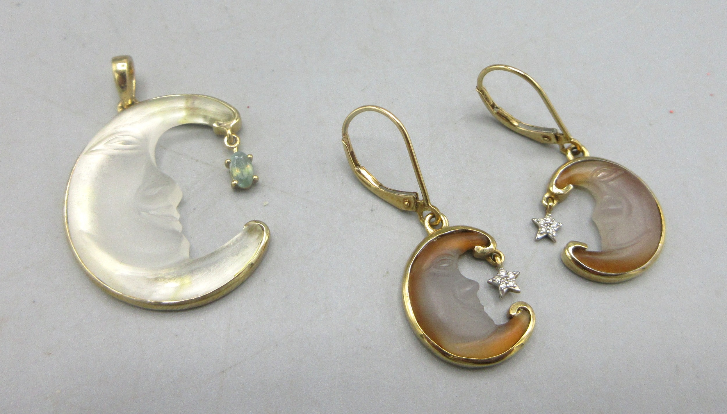 White quartz and Orissa ALexandrite moon pendant and matching drop set in 10ct yellow gold, stamped 10k, 10.18g