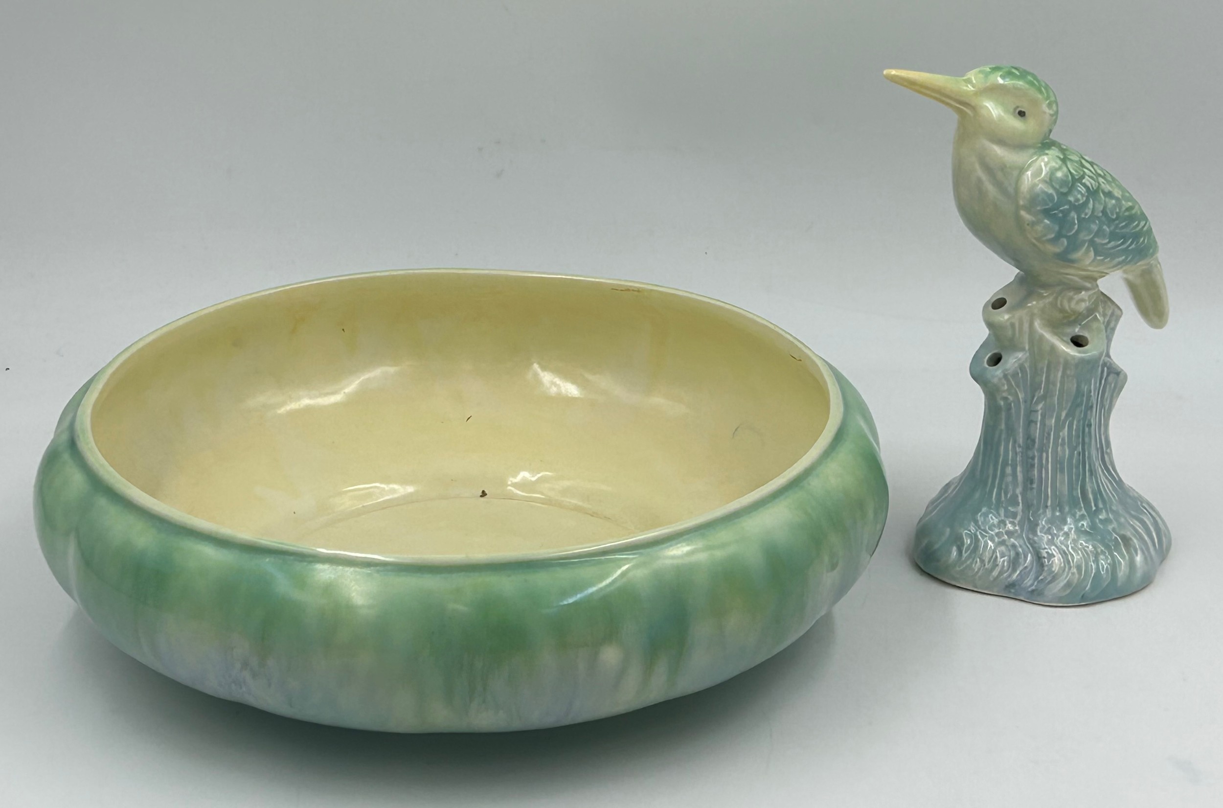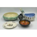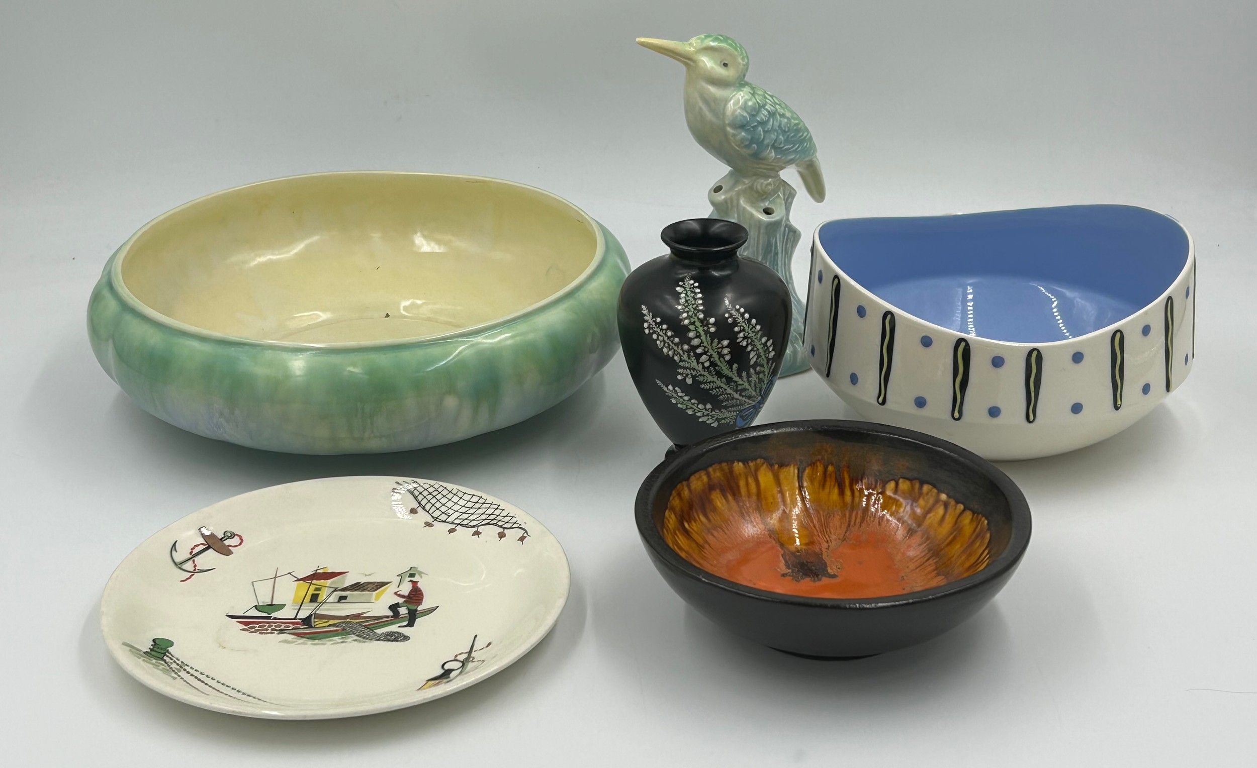 A collection of ceramics to include Hornsea Pottery 'Slipware' range 16cm d x 9cm h, Eric Leaper Newlyn Pottery orange bowl 12cm, Shelly vase with floral design, Sylvac bowl 23cm and kingfisher, Brixham Alfred Meakin plate with a fishing theme. (6).