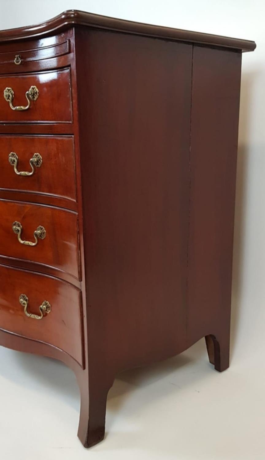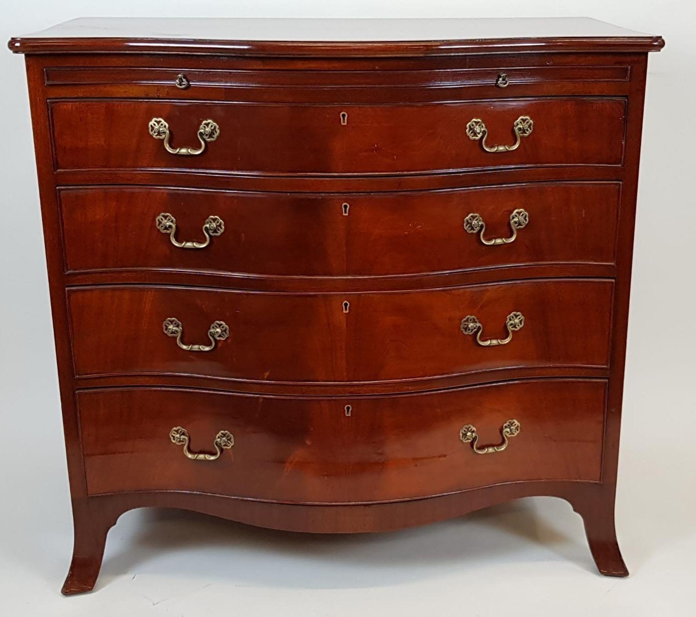 AN EDWARDIAN GEORGE III DESIGN MAHOGANY SERPENTINE FRONT BACHELOR’S CHEST