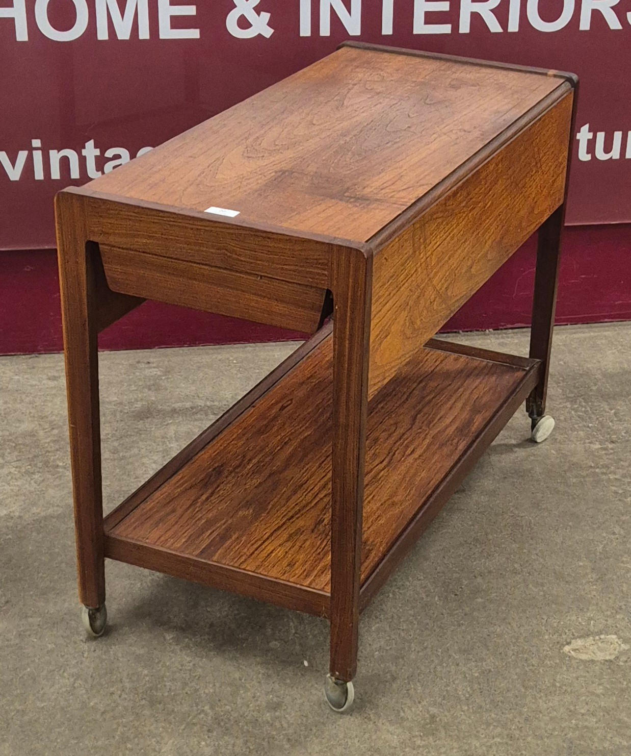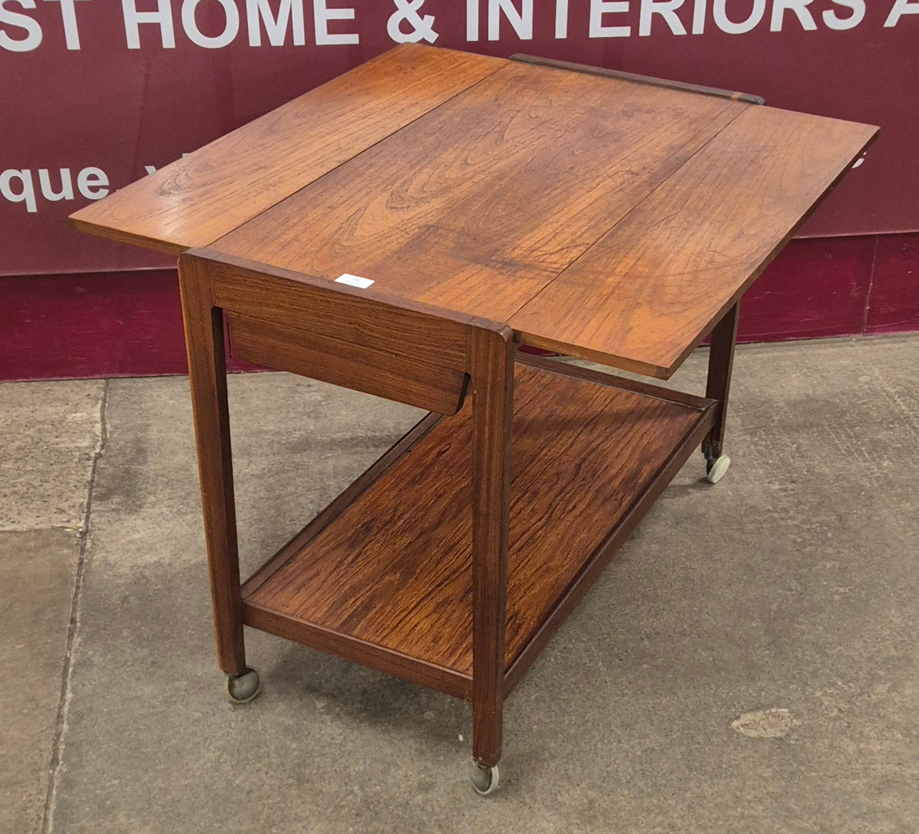 A Remploy teak drop-leaf trolley