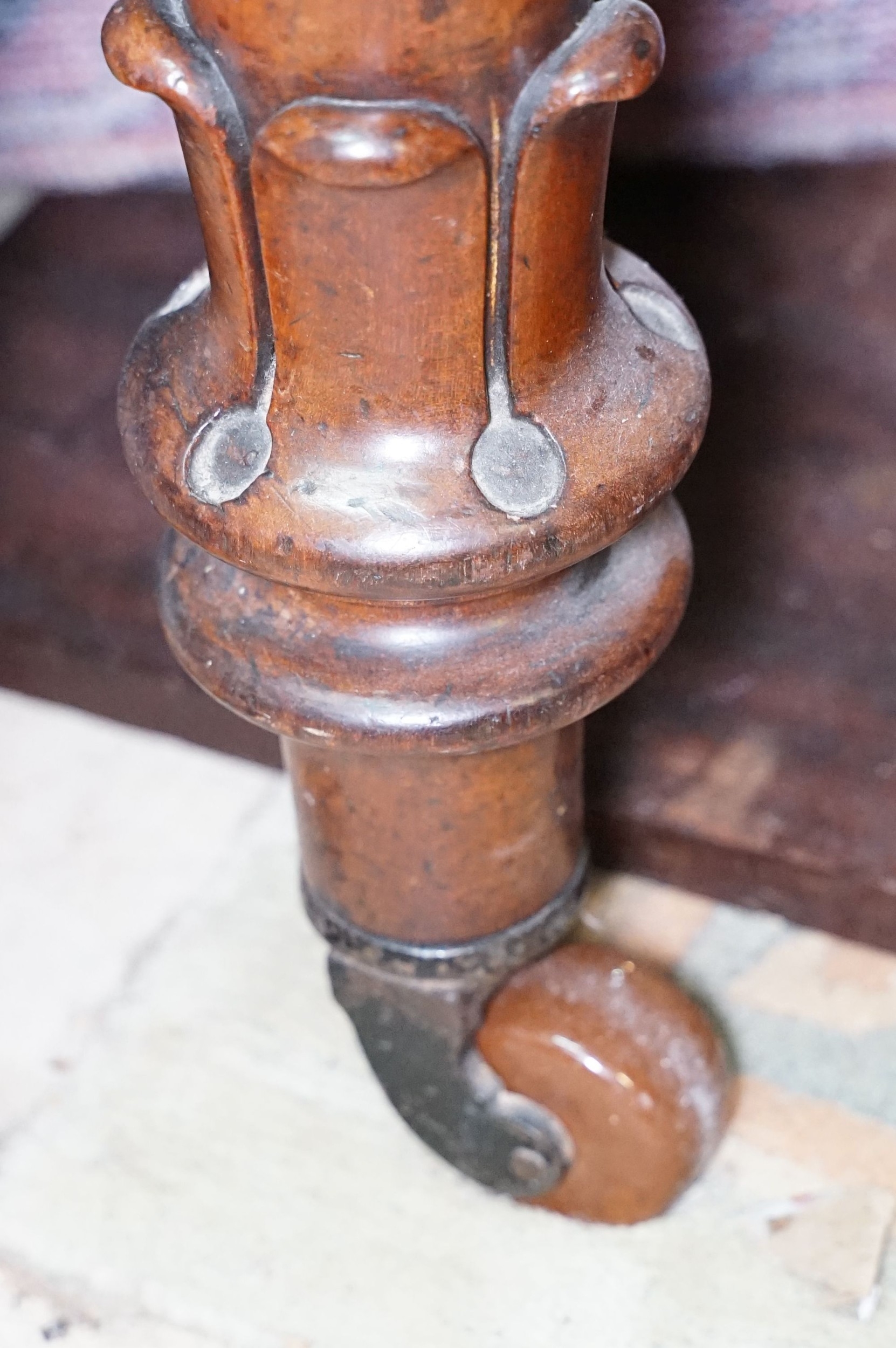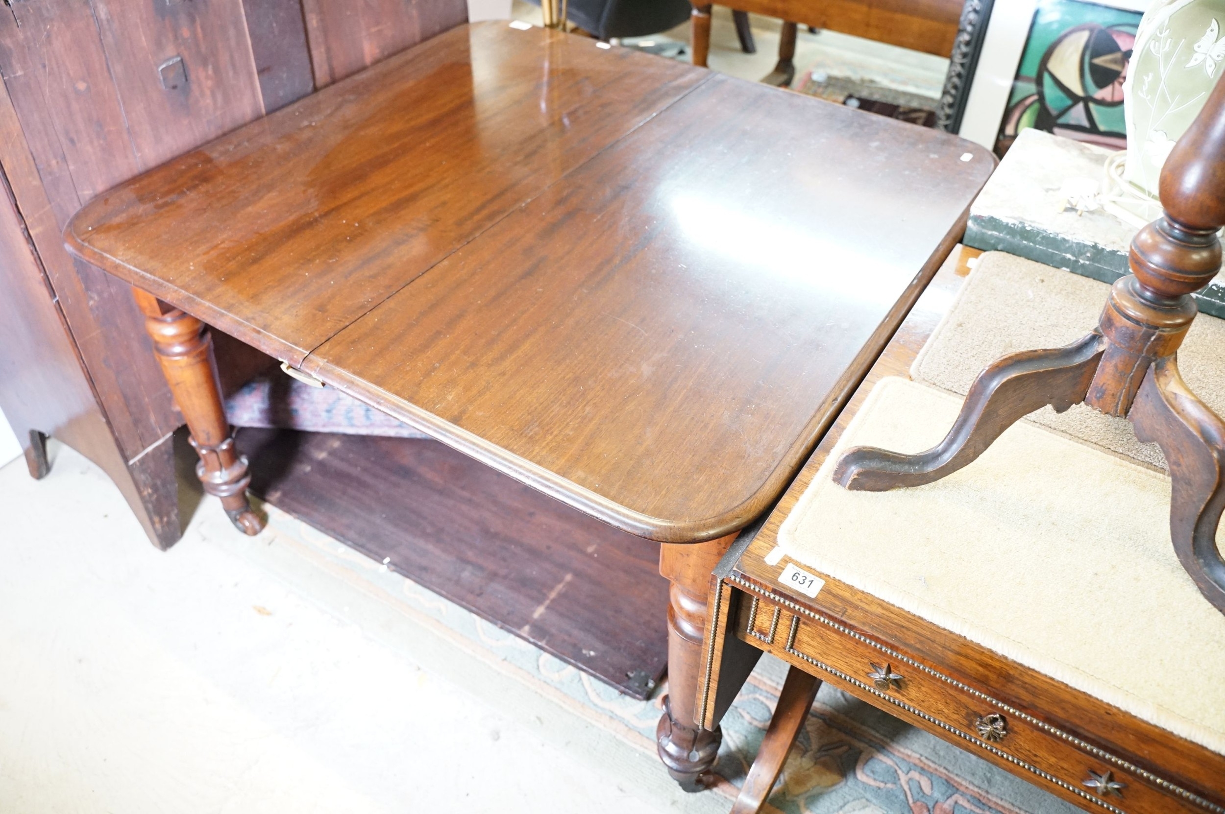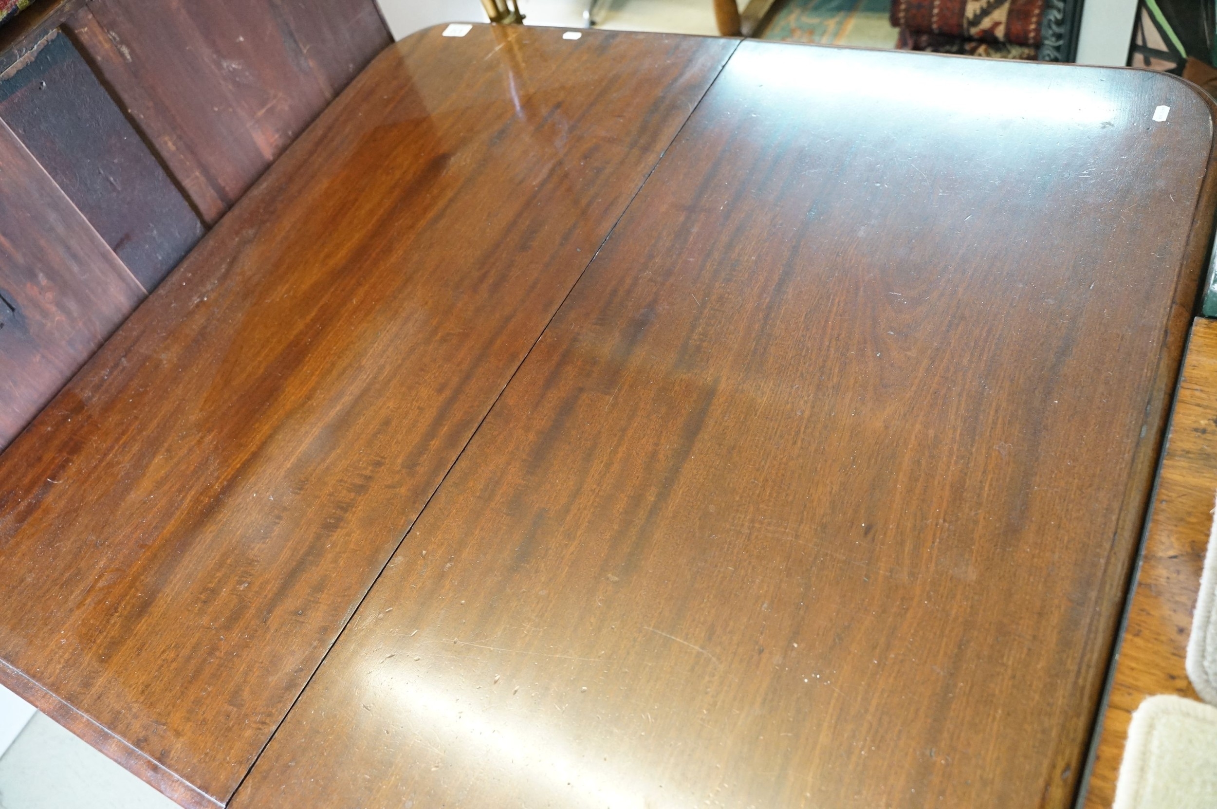 Late 19th/early 20th century mahogany extending dining table, raised on turned legs, 106cm x 112cm x H 71cm
