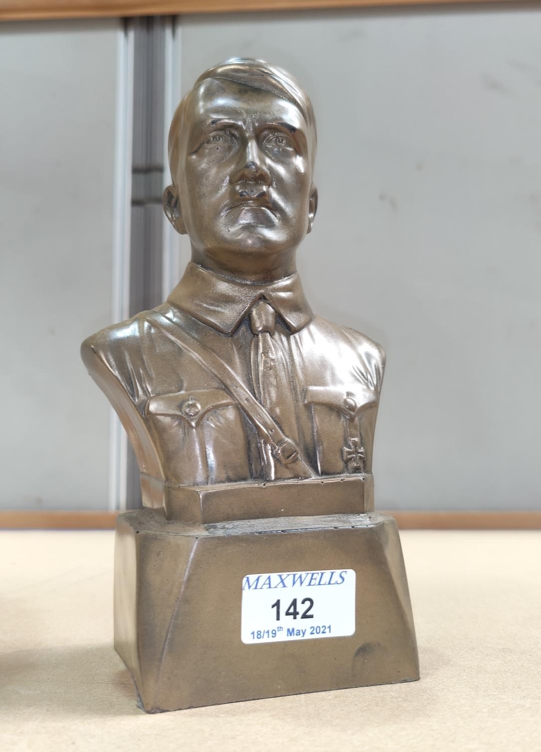 A resin bronzed bust of Adolf Hitler.