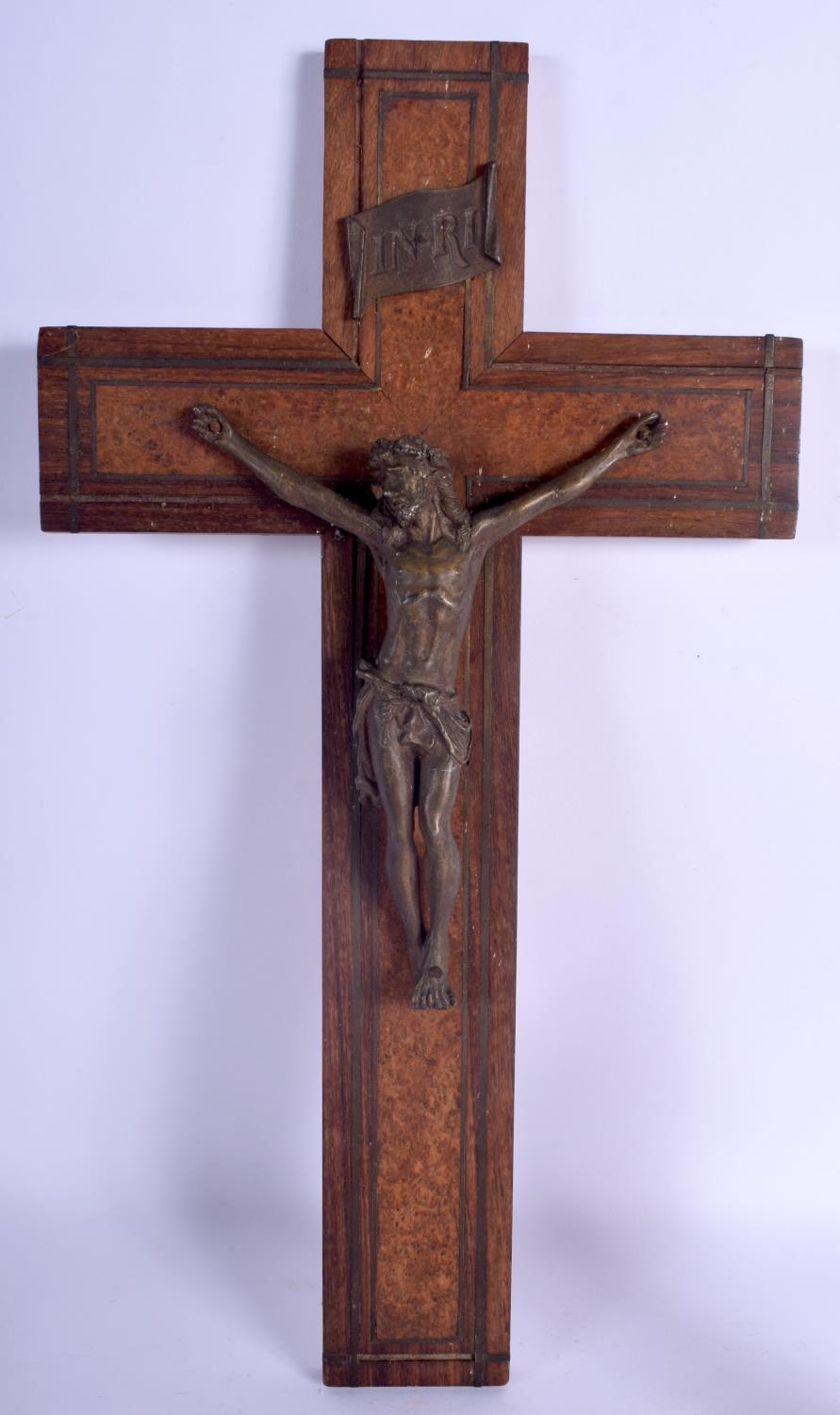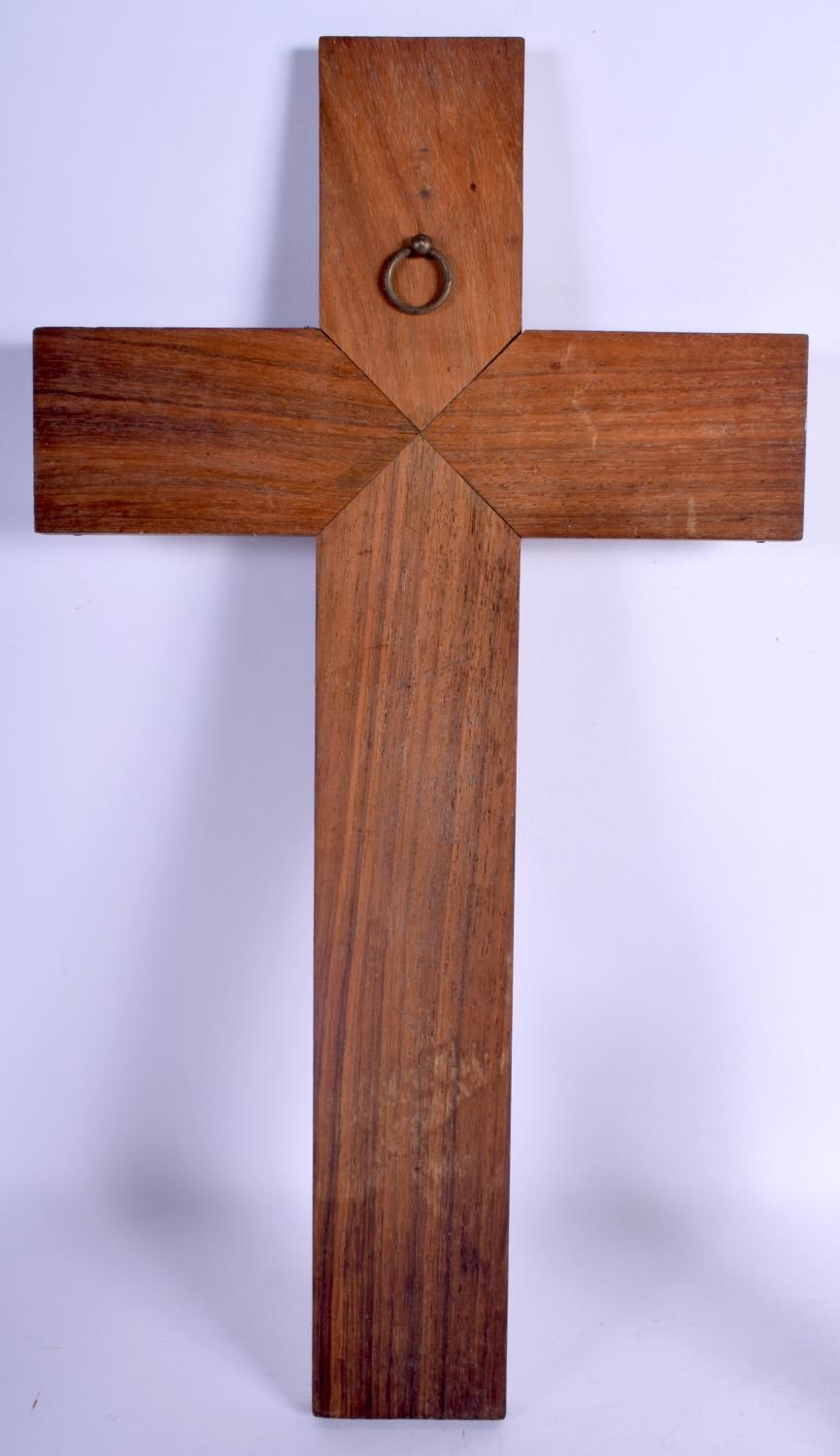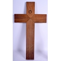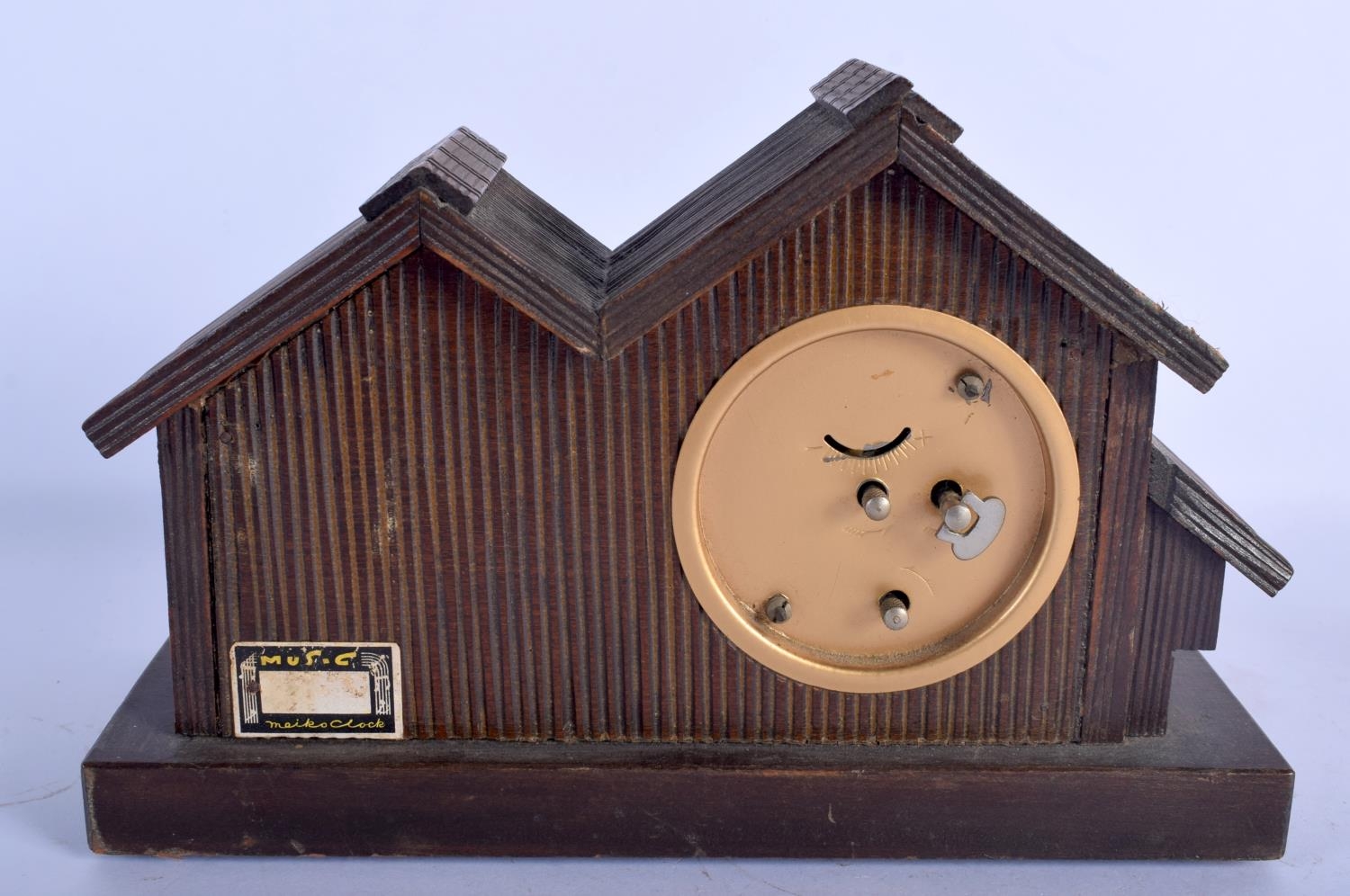 A VINTAGE BLACK FOREST MUSICAL CLOCK together with a Bavarian figure & a corpus christi. Largest 40 cm x 22 cm. (3)