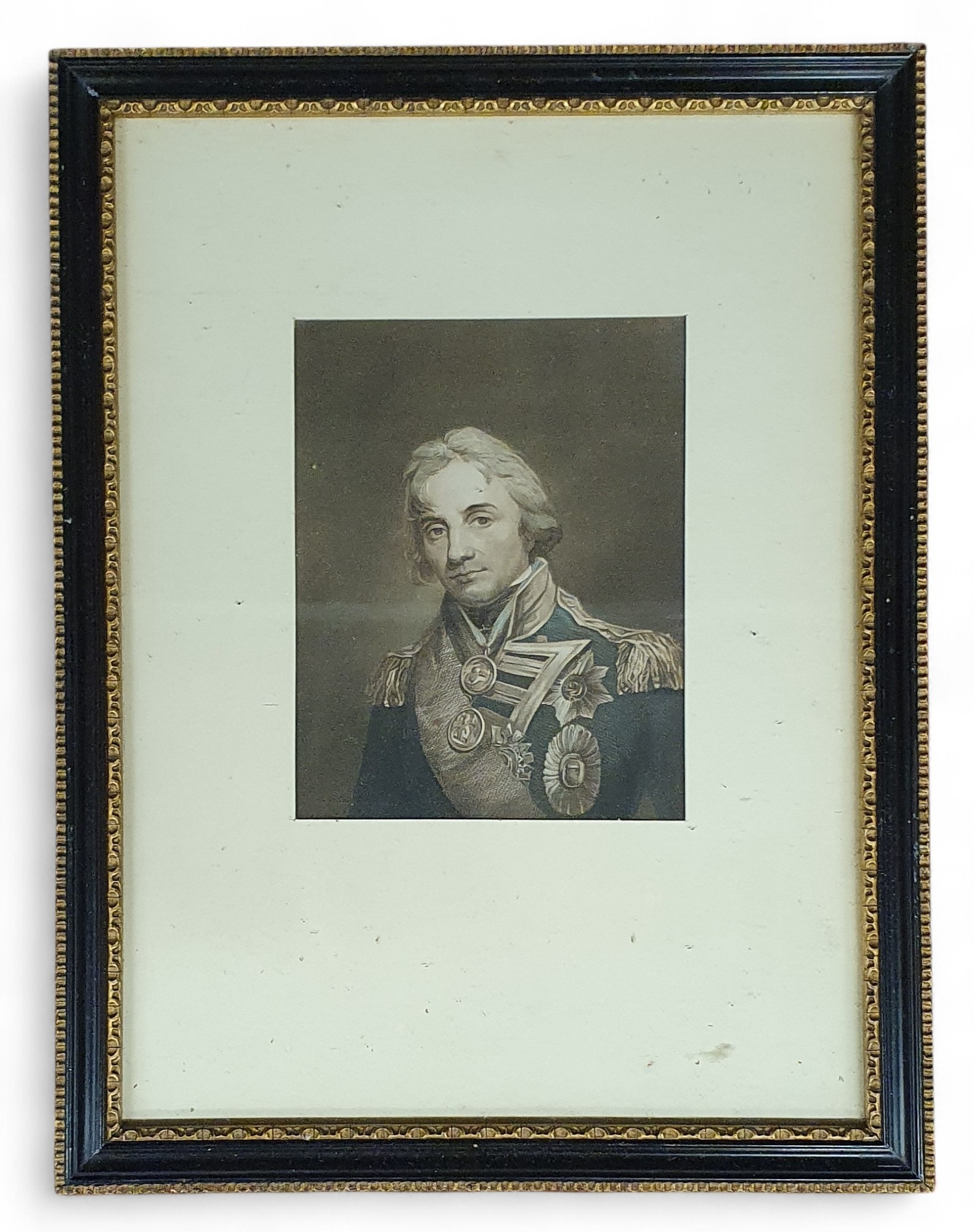 A 19th Century colour Print of a Military Gentleman along with two Engravings. 35 x 26 cm approx.