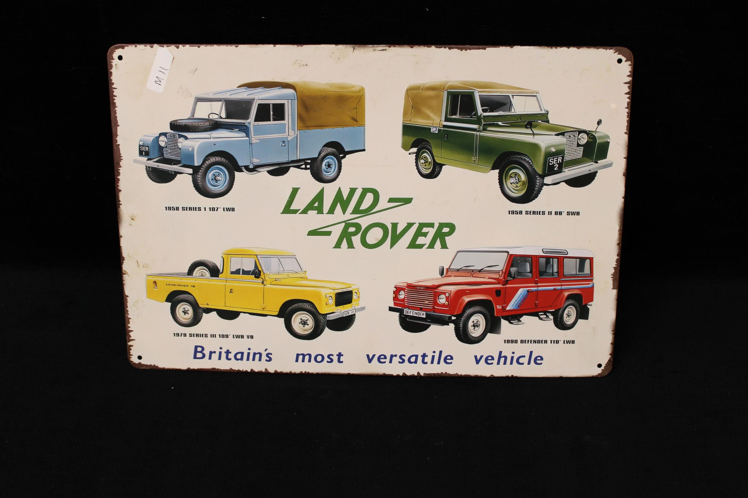 A tin plate Land Rover sign - 29.5cm x 20cm