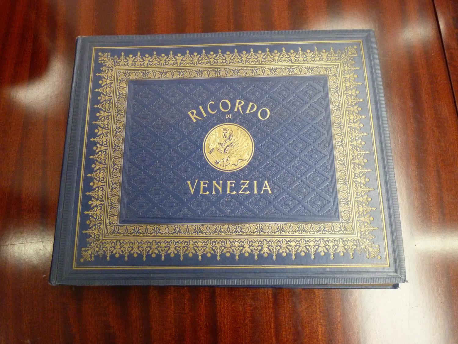 GENOVA ANTONIO. Ricordo di Venezia. Souvenir album of mounted photographs. Oblong quarto. Orig. blue cloth gilt, nice cond. N.d. but c.1900.