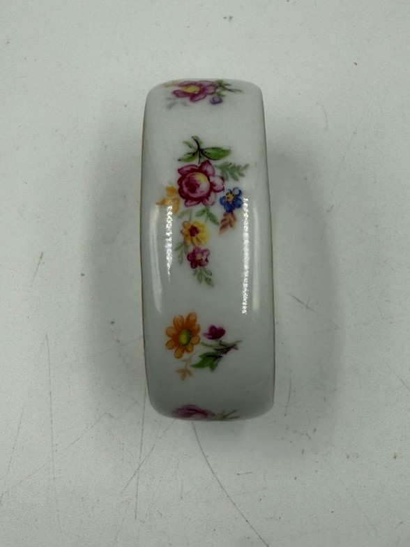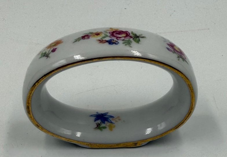 A set of six French florally painted ceramic napkin rings