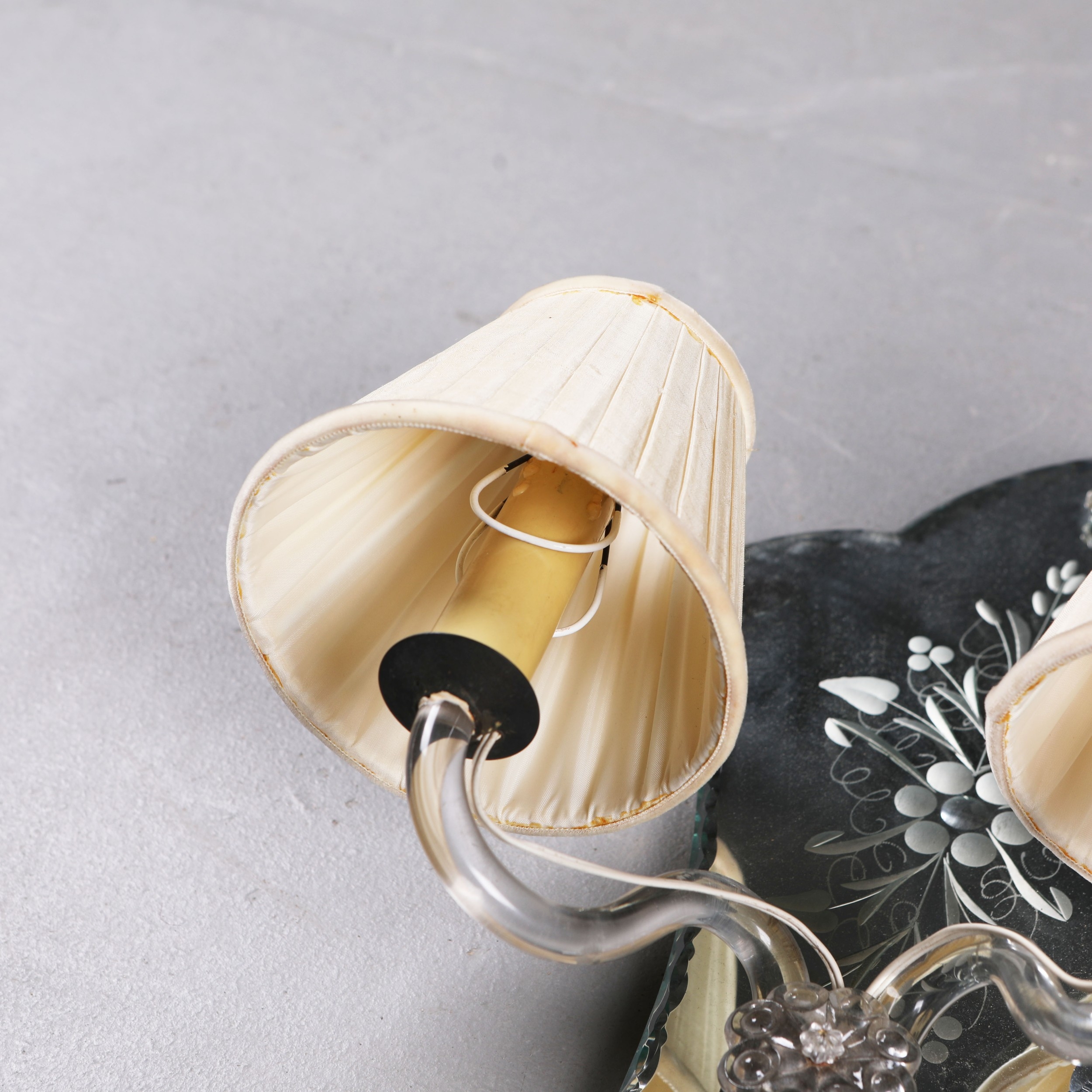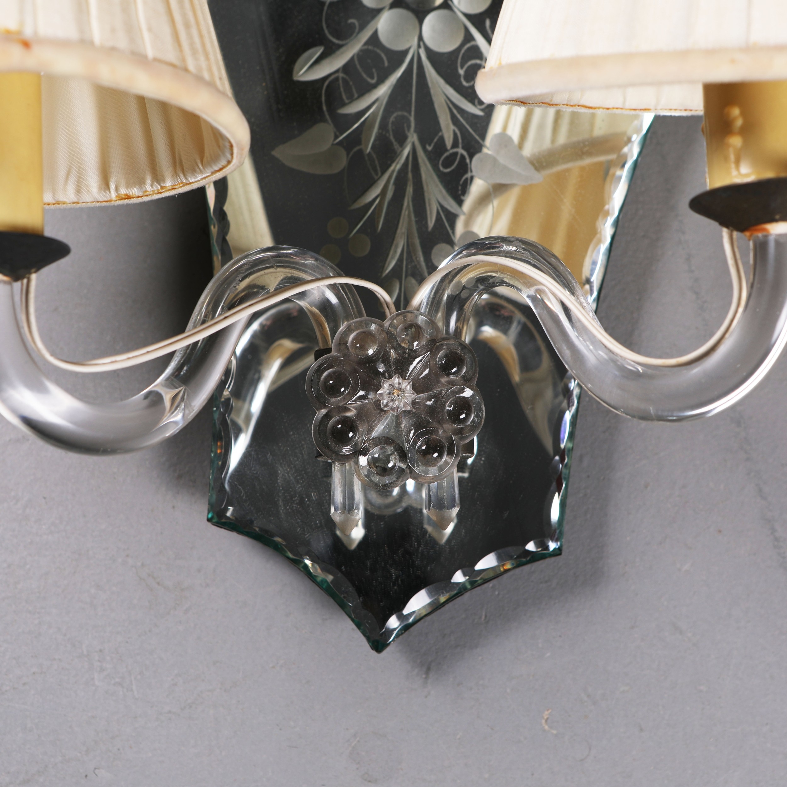 MID-CENTURY ITALIAN GLASS WALL SCONCES (2). a pair, 35cm H x 34cm W approx.