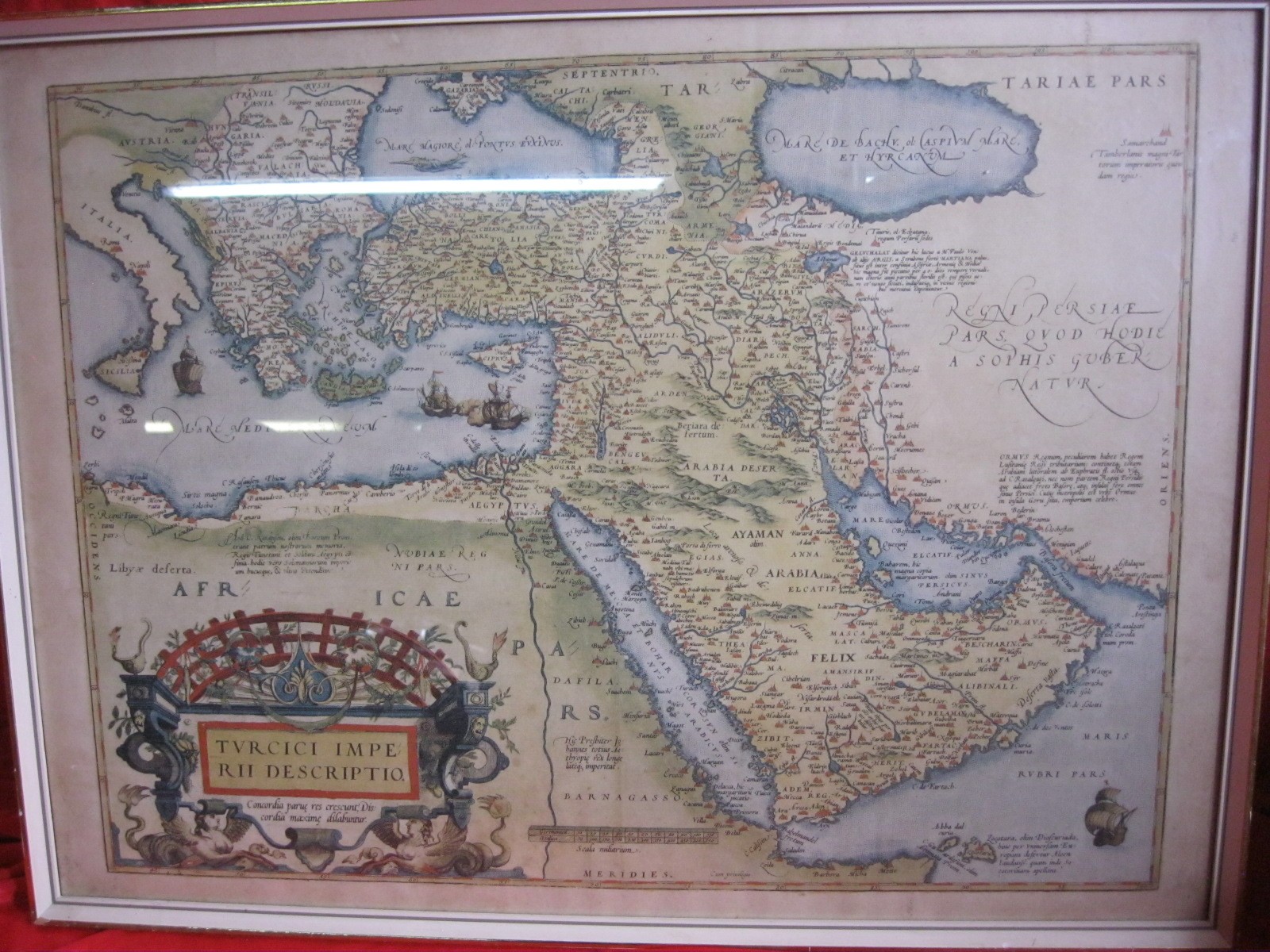 Framed and glazed antique map print