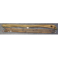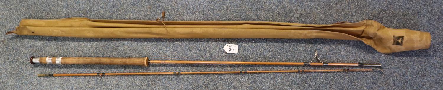 Vintage Hardy two-piece Wanless red fishing split cane rod in original canvas case, marked Hardy Bros Ltd.