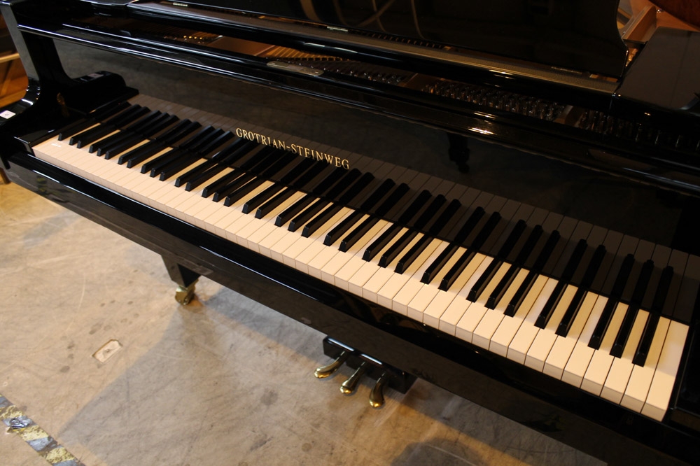 Grotrian Steinweg (c2011) A 6ft 3in Model 192 grand piano in a bright ebonised case on square tapered legs.