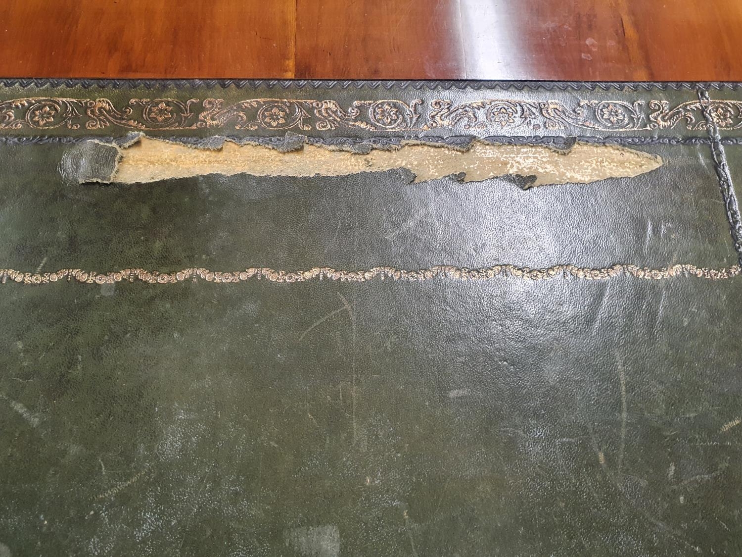 A really good modern Pedestal desk. W 136 x 76 x H 76 cm approx. (damage to leather top).