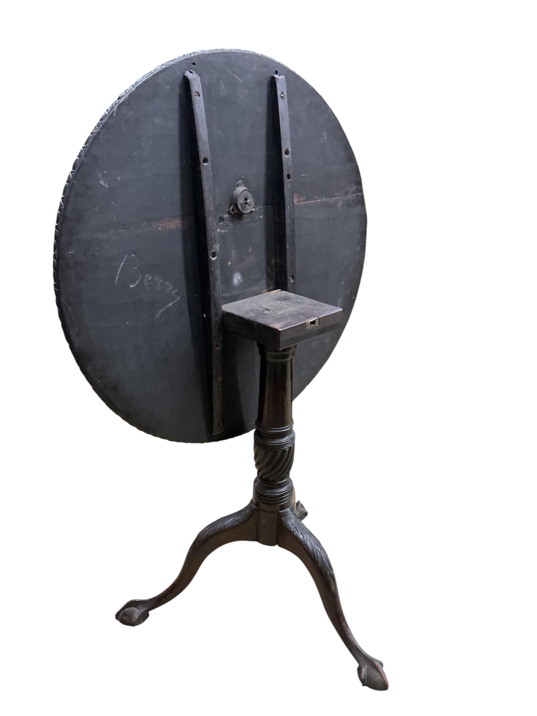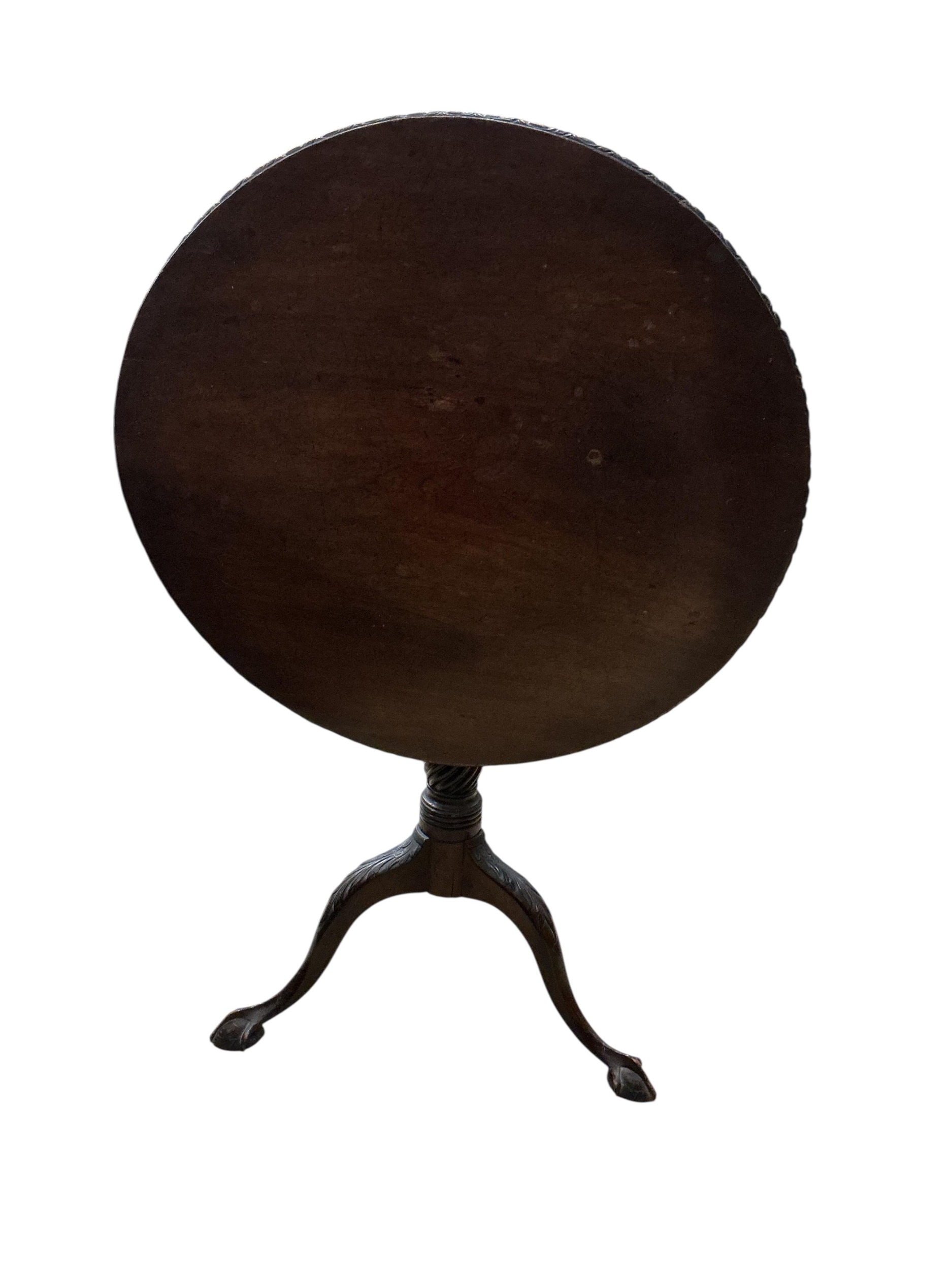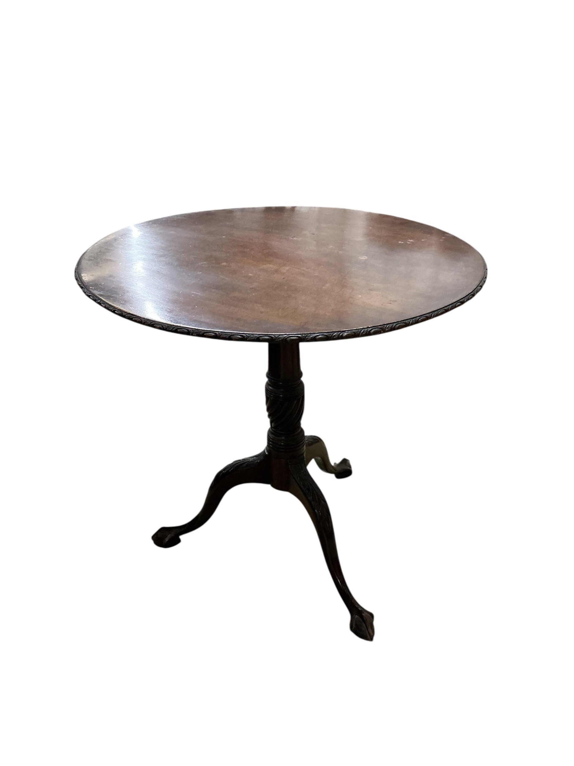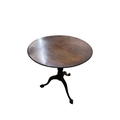 A George III style circular mahogany tilt top tripod tea table, diameter 74cm, height 70cm