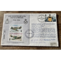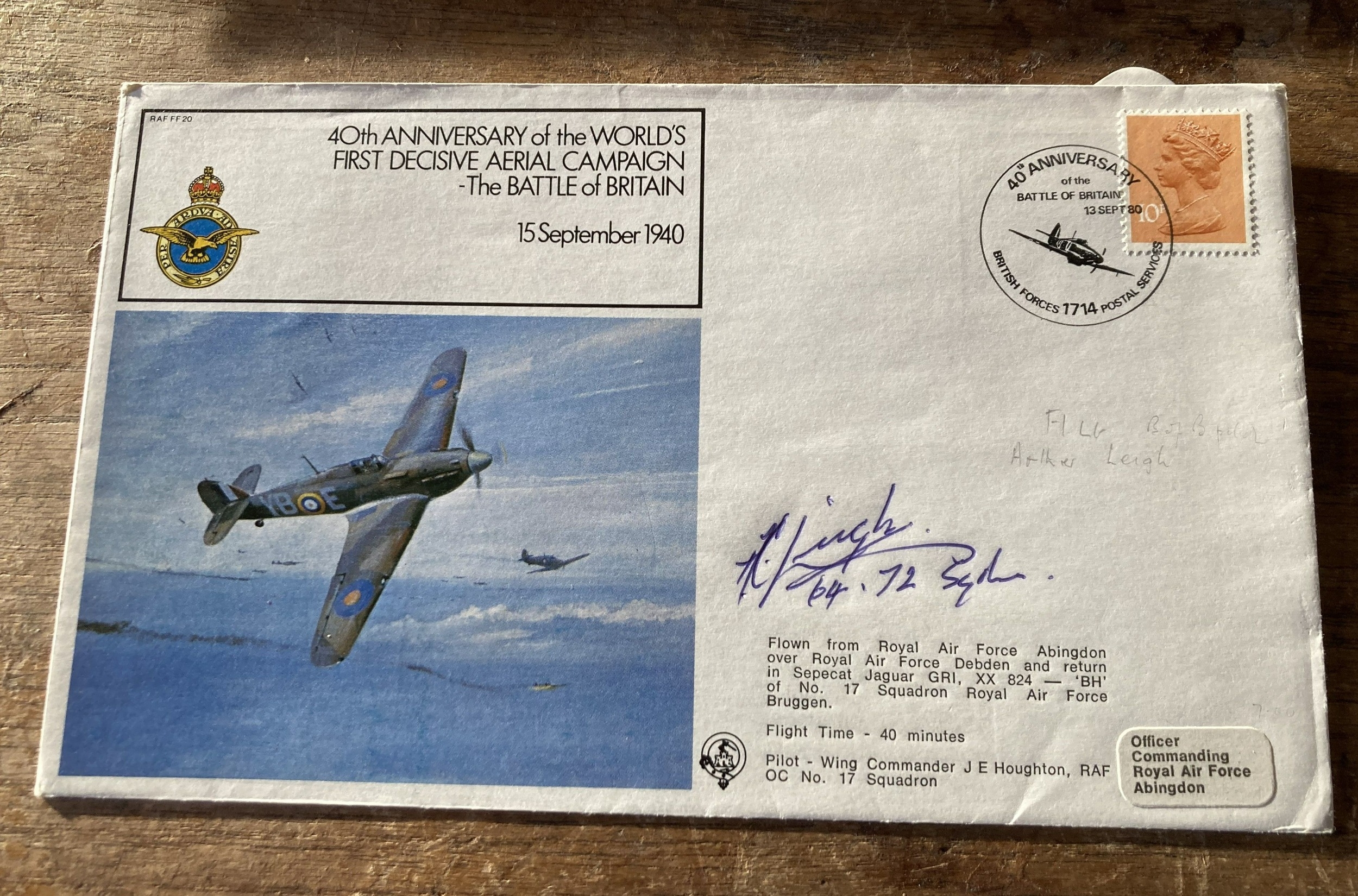 WW2 Flt Lt Arthur Leigh DFC DFM BOB signed cover. RAF FF 20 40th anniv of the World's First Decisive Aerial Campaign - The Battle of Britain 15 Sept 1940 signed Flt Lt Arthur Leigh BoB pilot 64 & 72 sqn RAF WW2 FDC. Leigh was posted to 7 OTU Hawarden on 31st August 1940 and after converting to Spitfires joined 64 Squadron at Leconfield. He flew his first operational sortie on 29th September. He moved to 72 Squadron at Biggin Hill on 11th October and then to 611 Squadron at Acklington on 8th November 1940. He shared in the destruction of a Do17 on 21st December. Leigh shared in probably destroying a Me109 on 28th May 1941, destroyed a Me109 and probably another on 18th June, got a probable Me109 on the 22nd, probably destroyed another and damaged a second on 4th July, probably destroyed another on the 23rd and destroyed two more on 19th August and 4th September. He was awarded the DFM (gazetted 9th September 1941). Leigh had by then completed fifty sweeps over France. He was commissioned in early October and on the 21st he was posted to CFS Upavon for an instructors course. Leigh went to 8 FTS Montrose in December 1941 to instruct on Masters. He moved to 17 (P) AFU Watton in February 1942 and then to 56 OTU Tealing in February 1943. In the same month he married Joan Irene Townsend in St. Neots. Leigh was posted to Gibraltar in April 1943, from where he ferried Hurricanes to Cairo. In early August he returned to the UK and joined 56 Squadron at Manston on the 6th. He was shot down on 9th September in Typhoon 1b JP595, hit by flak over St. Omer. Leigh baled out into the Channel and was picked up by an ASR launch. In late 1943 he was posted to 129 Squadron at Hornchurch and awarded the DFC (gazetted 19th September 1944). On completing his second tour in December, Leigh went on a gunnery course to Catfoss and afterwards became an instructor. Single Vendor collection. Good condition. We combine postage on multiple winning lots and can ship worldwide. UK postage from £5.99, EU from £7.99, Rest of World from £9.99.