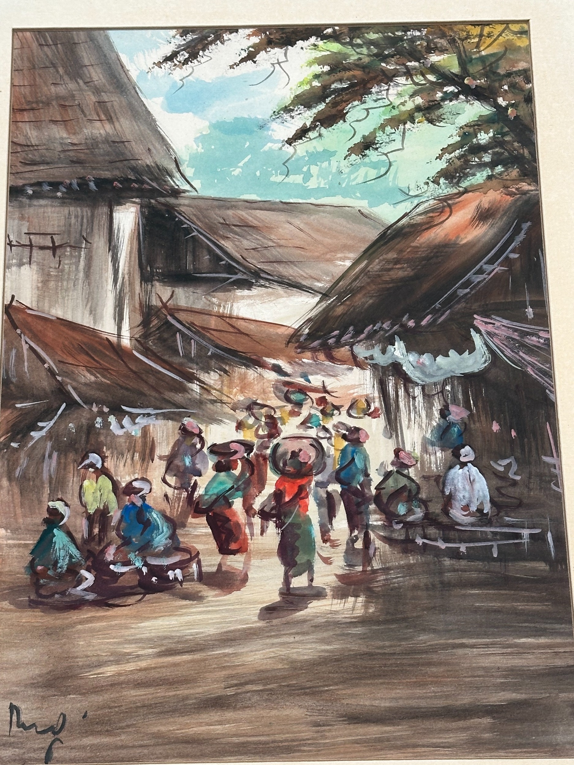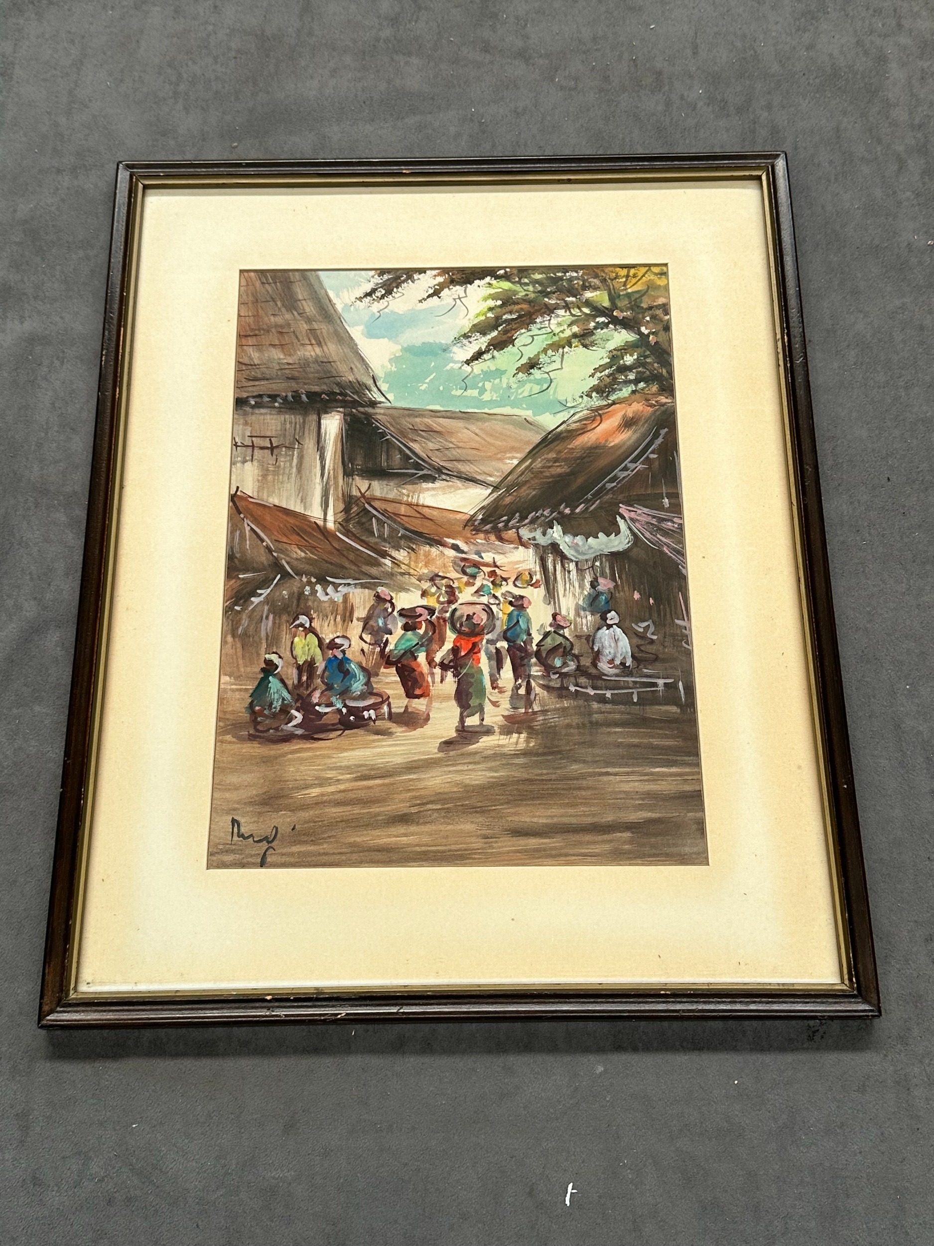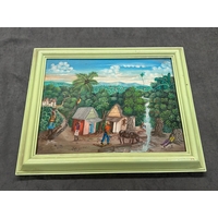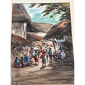 Framed Original Village Market Scene, Signed