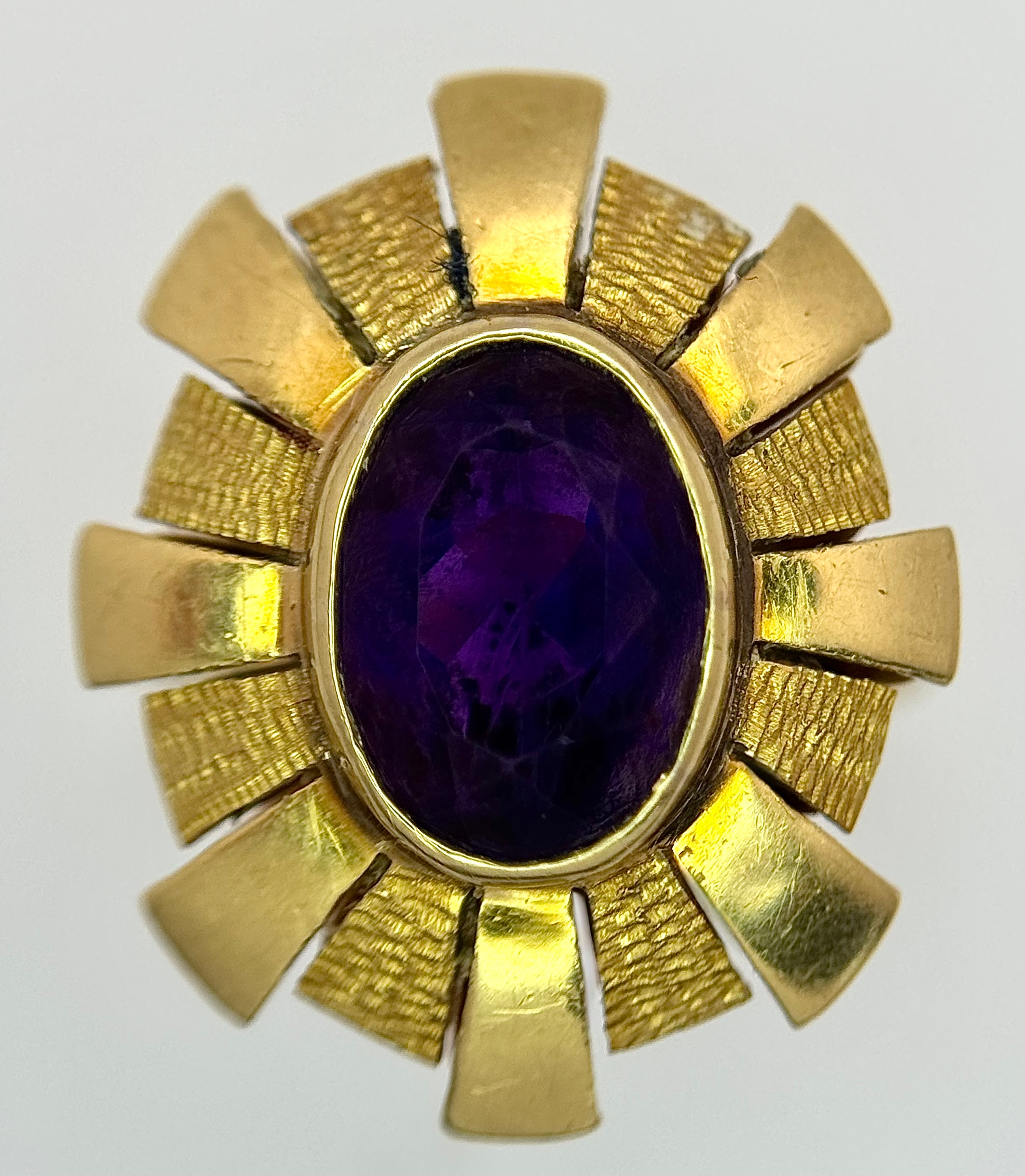 An 18K Yellow Gold, Amethyst Pendant and Ring Set. An oval a...