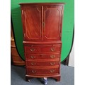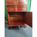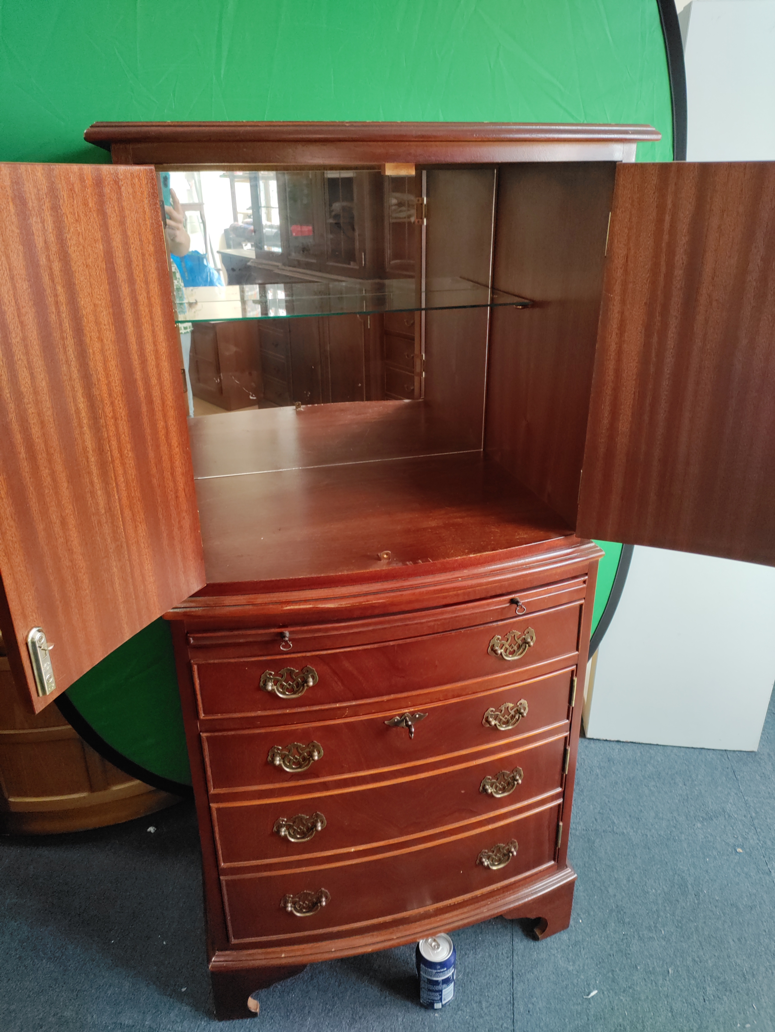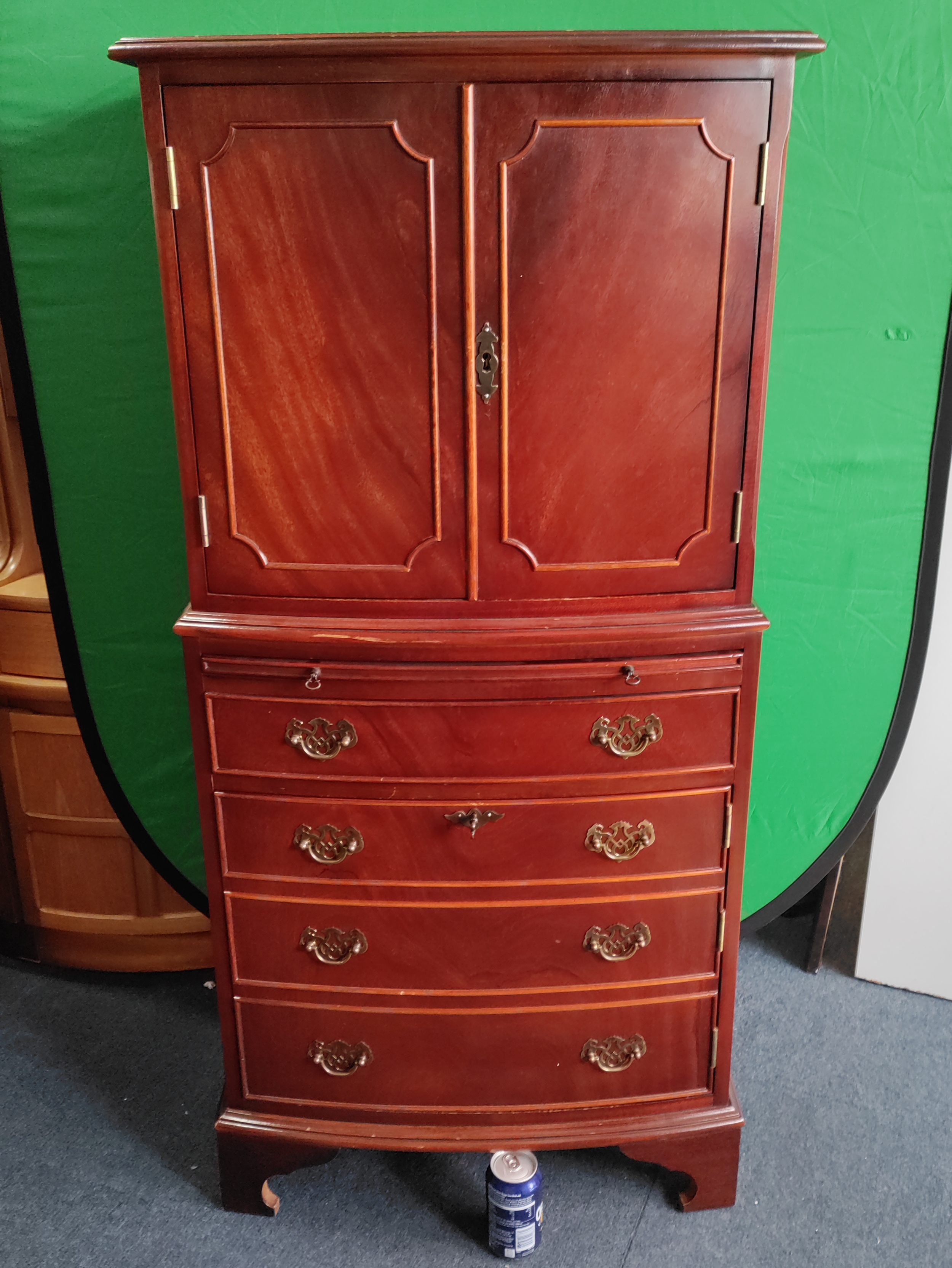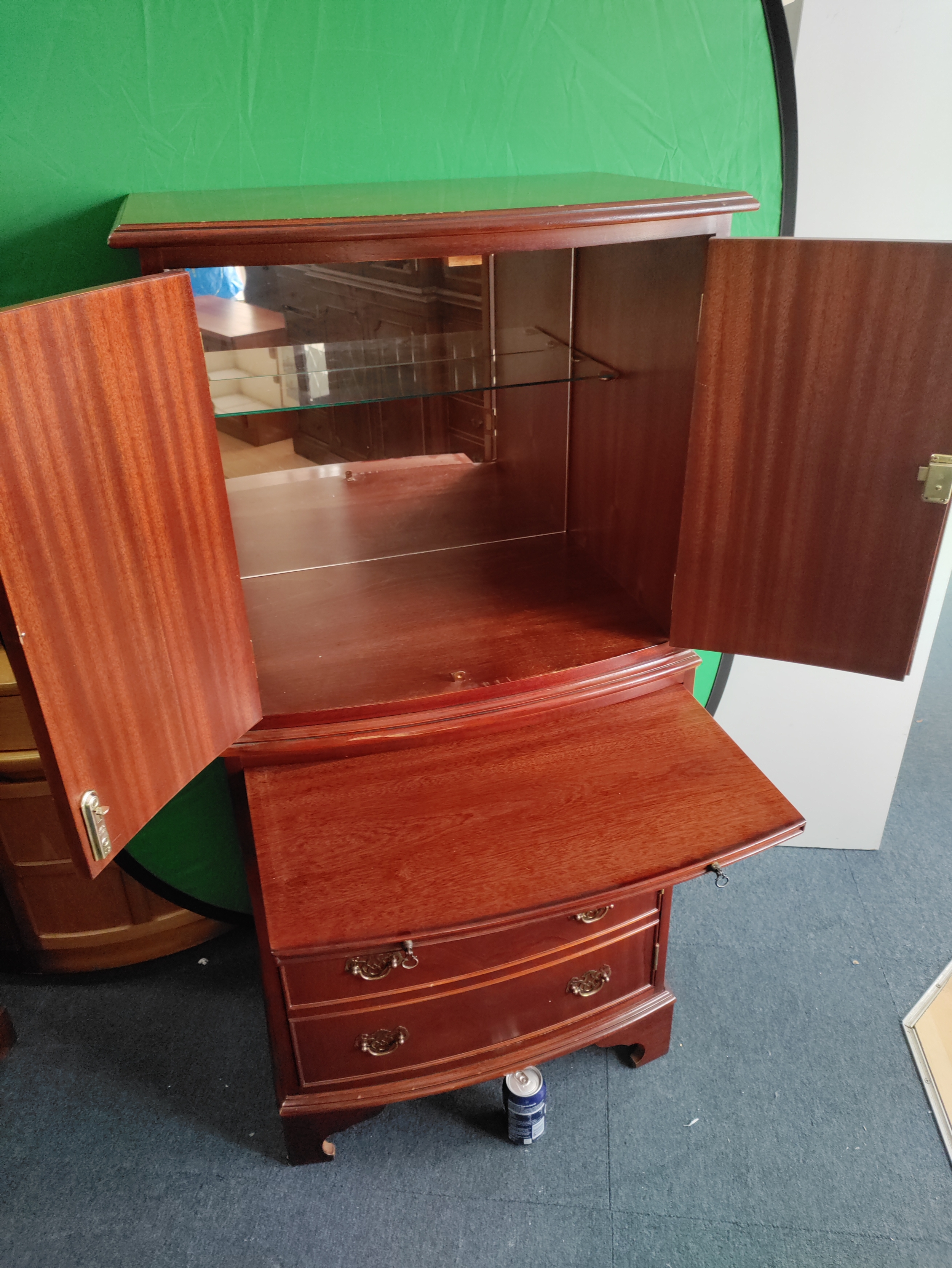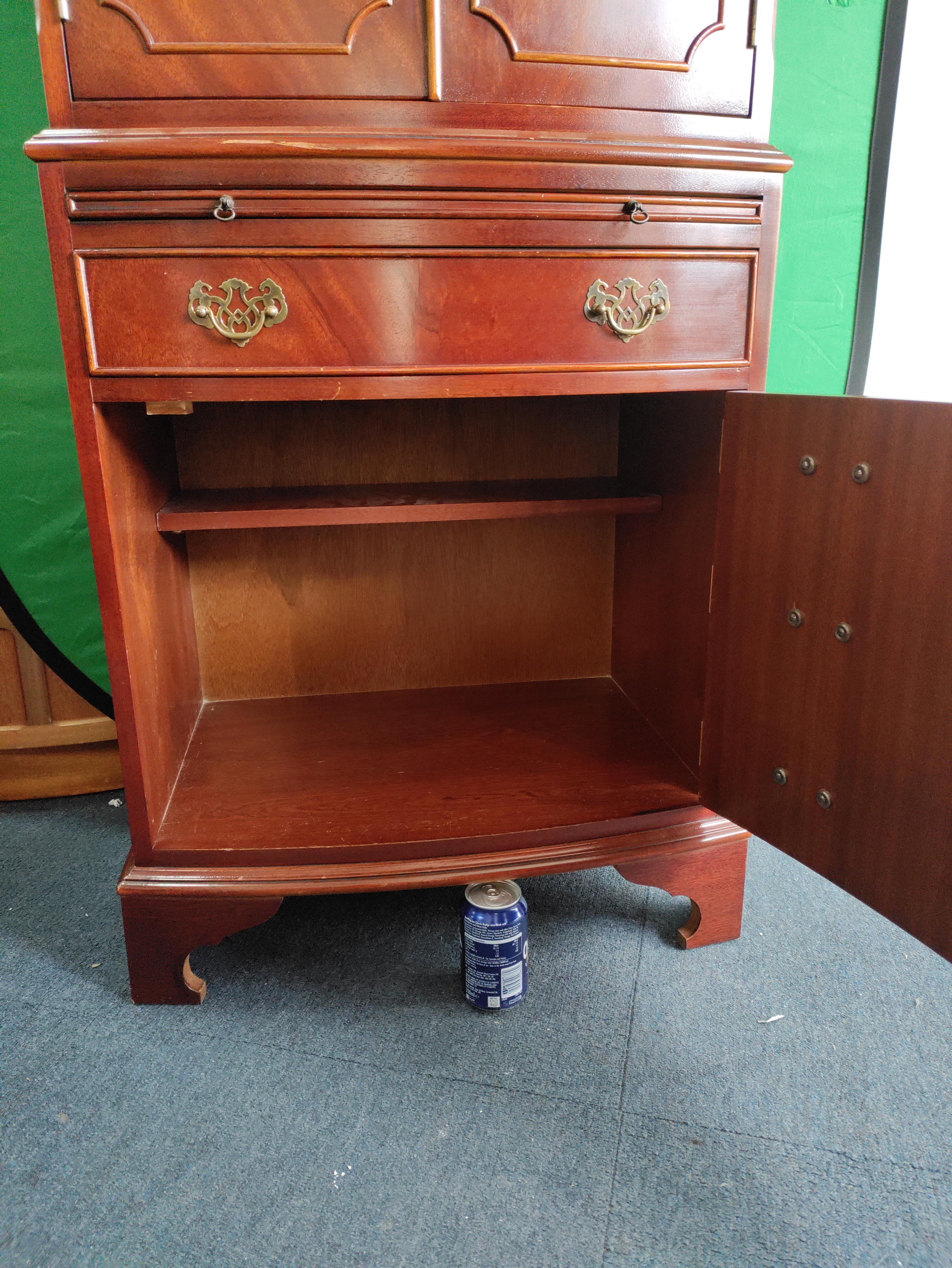 A vintage TV / drinks cabinet with a pull out flap and draw fronted cupboard. Includes keys.