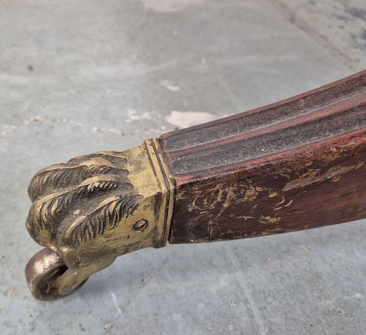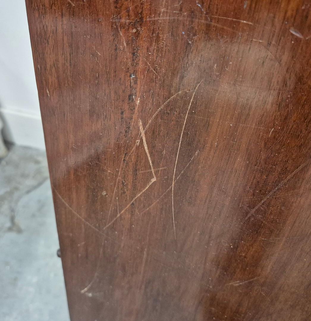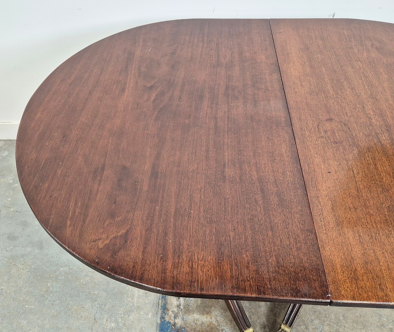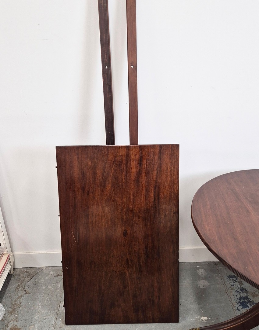 DINING TABLE, REGENCY STYLE. mahogany, with two pedestals each with tripod supports, with two leaves, approx. 260cm long extended x 99cm d.