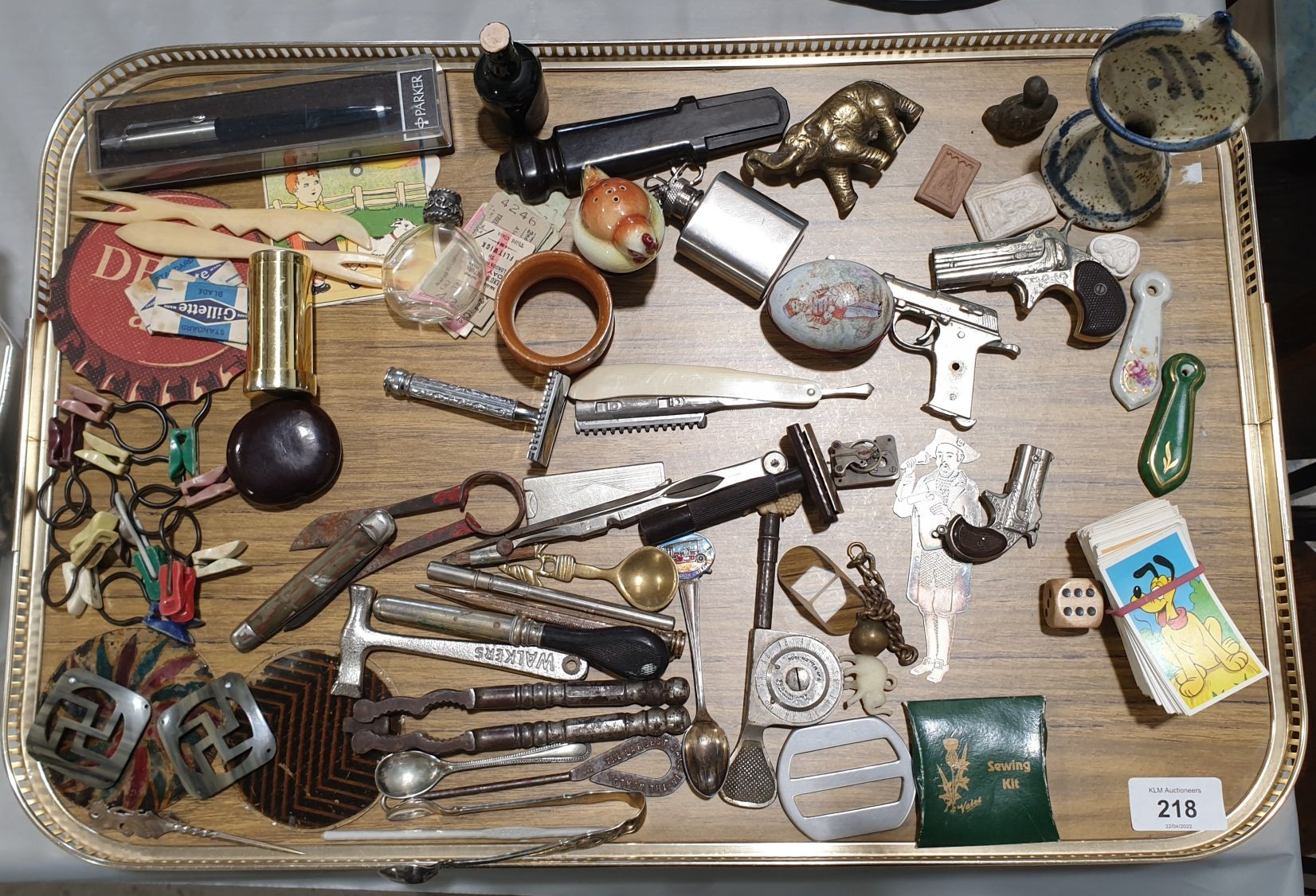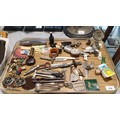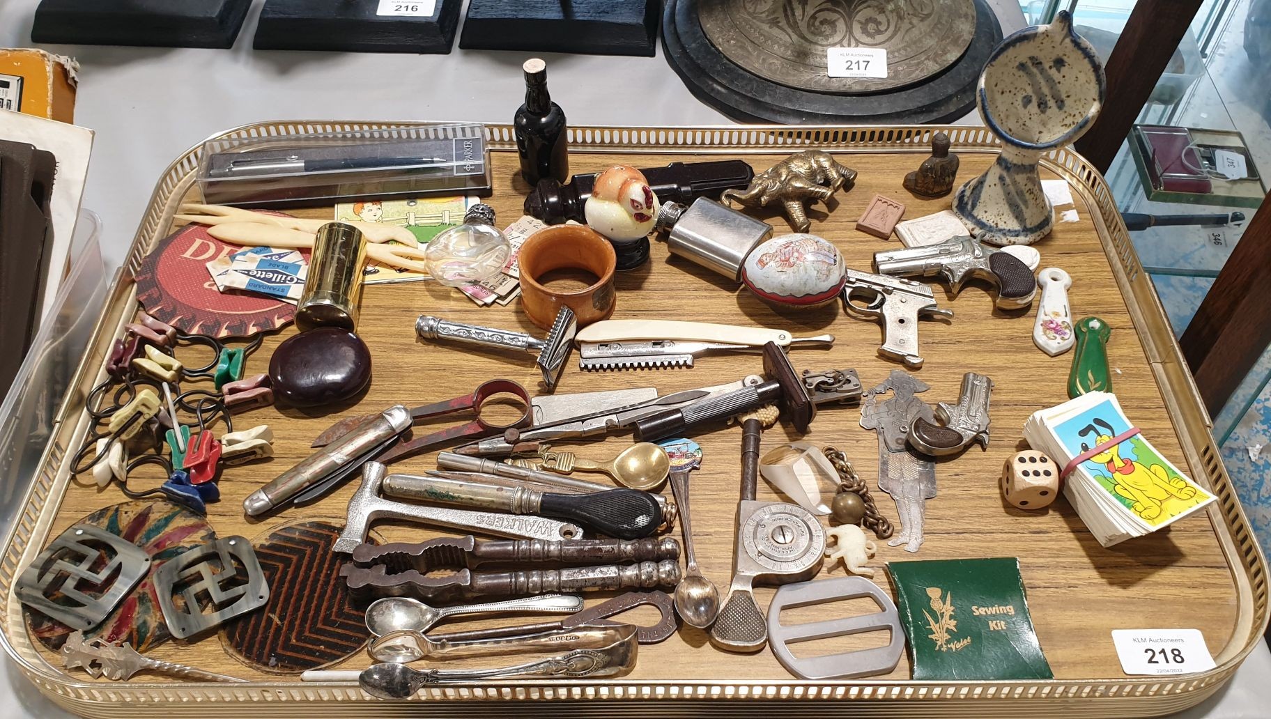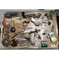A tray of collectables including an 800 silver item.UK shipping £14.