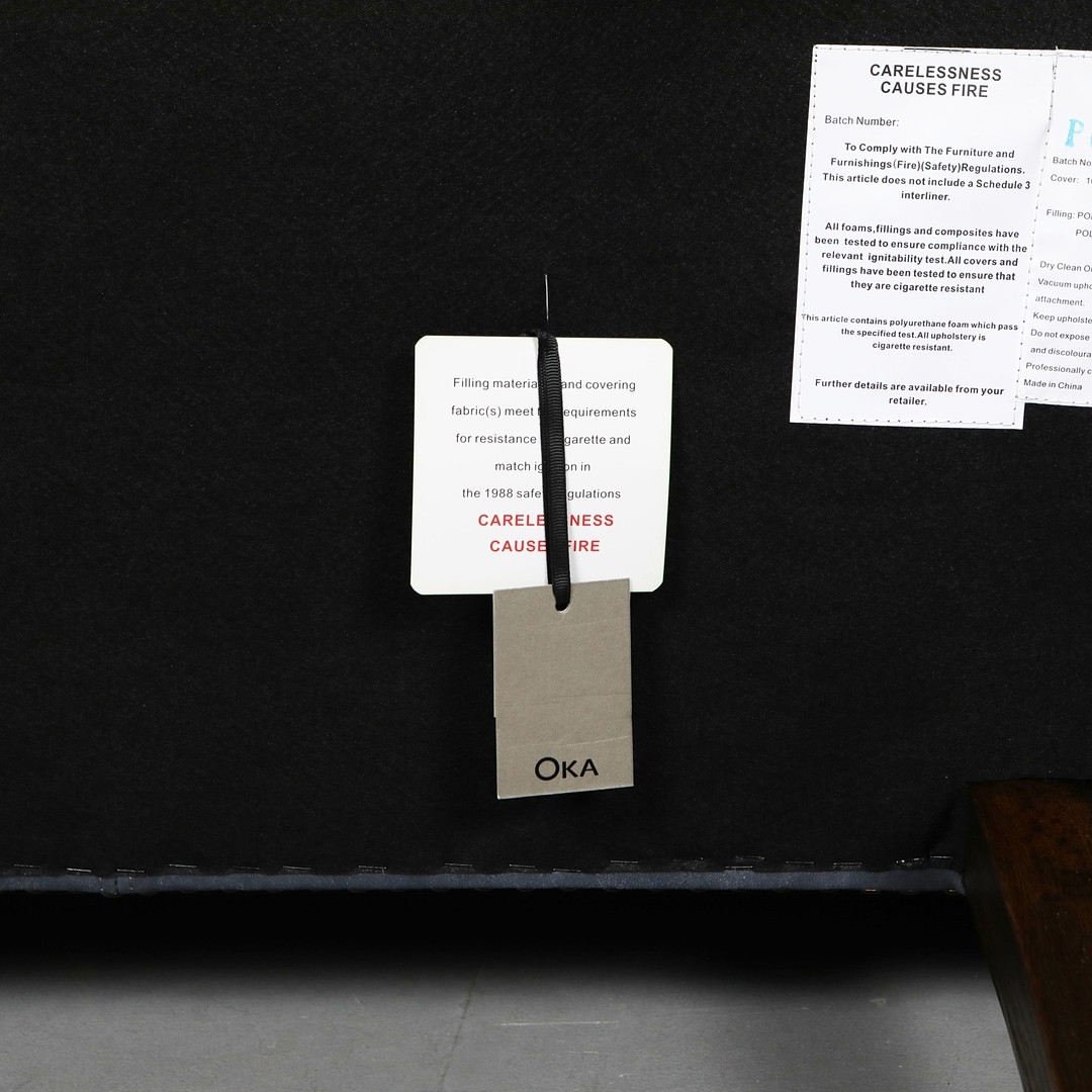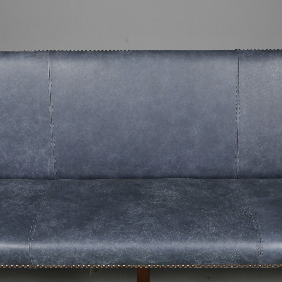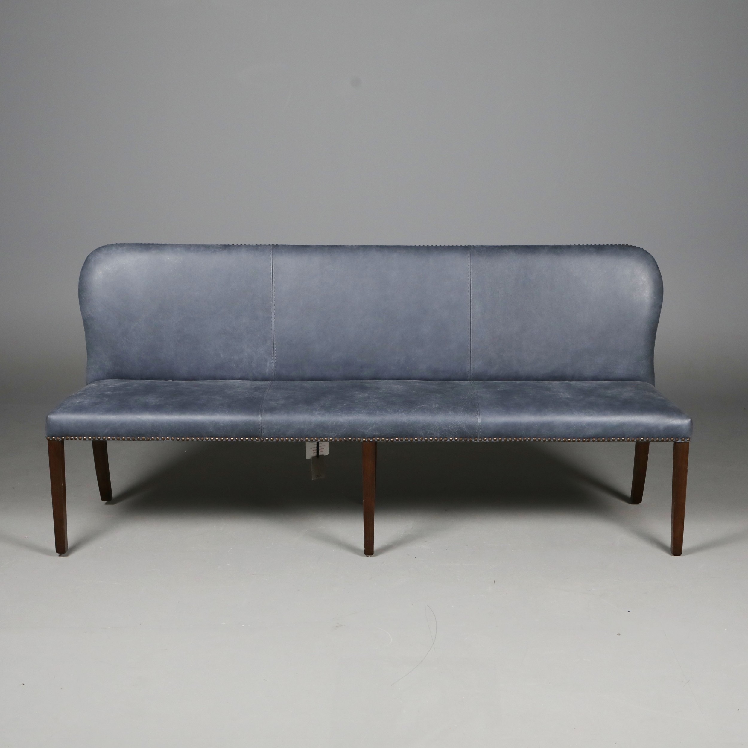 OKA DINING BENCH. "Stafford" in smoke blue leather 94cm t x 200 w x 50 cm d.