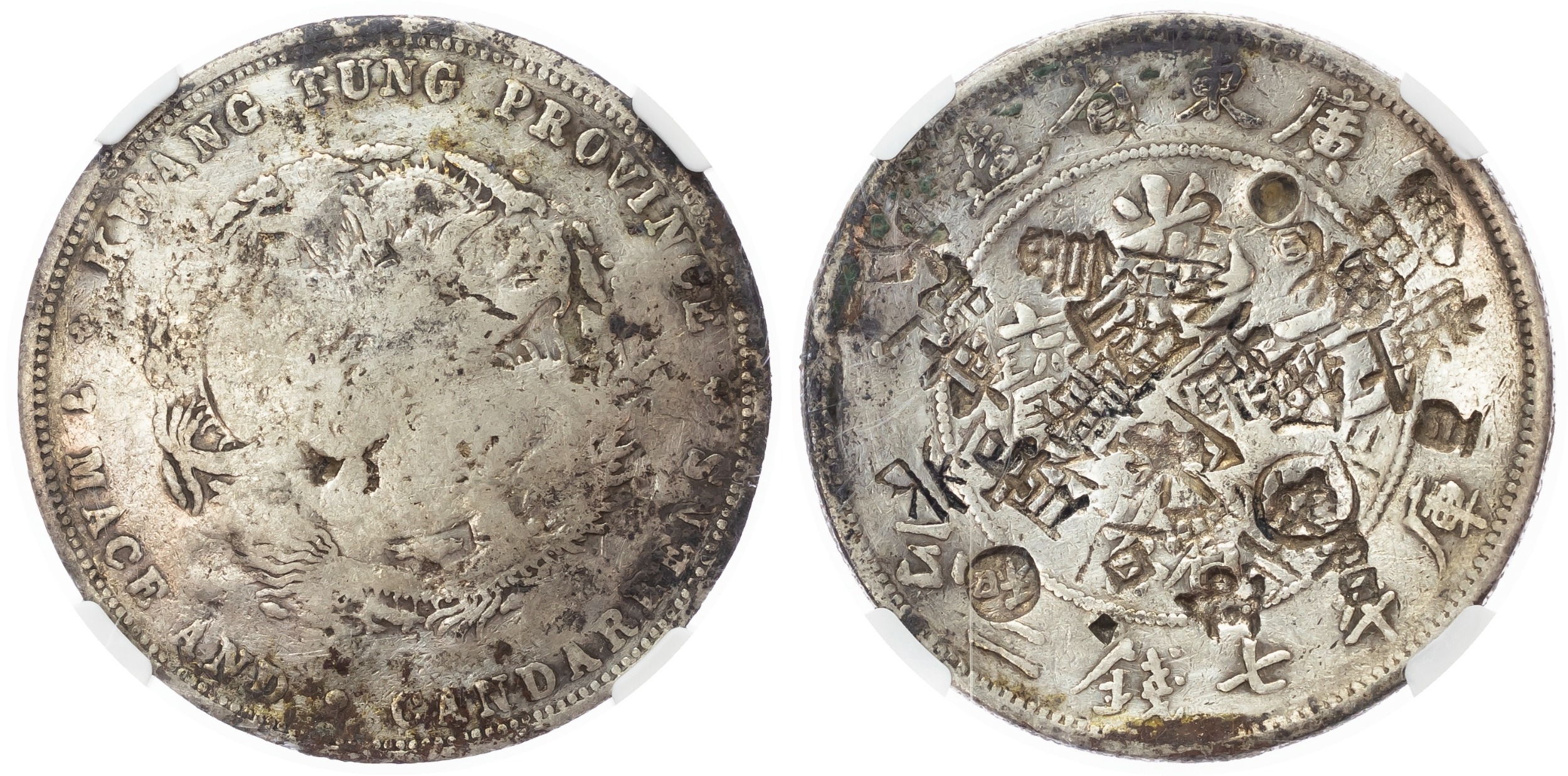 China, Kwangtung, silver Dollar, ND (1890-1908), Kwangtung mint (LM 133). In NGC holder graded Fine Details ? Chopmarked (6400900-103).