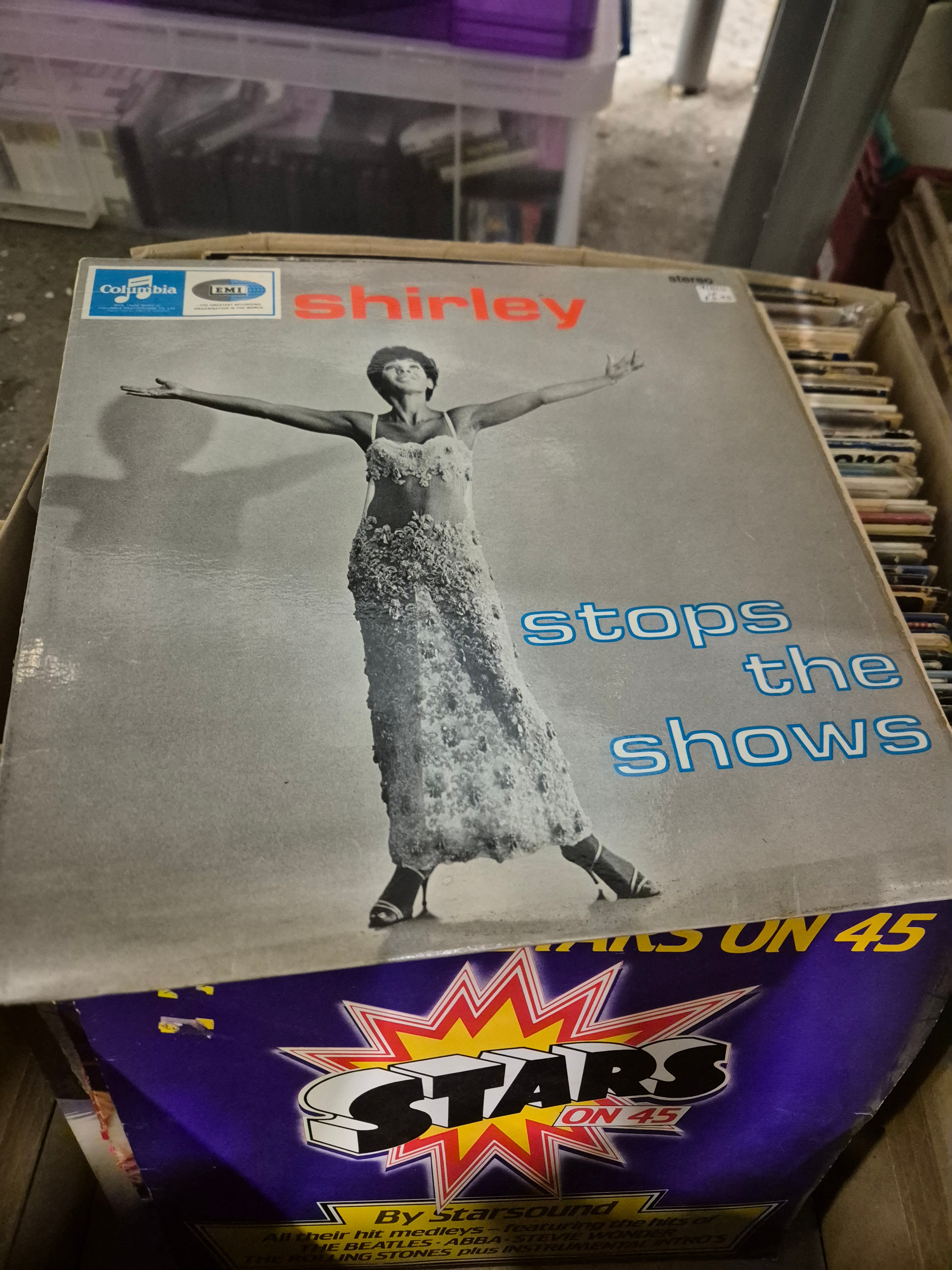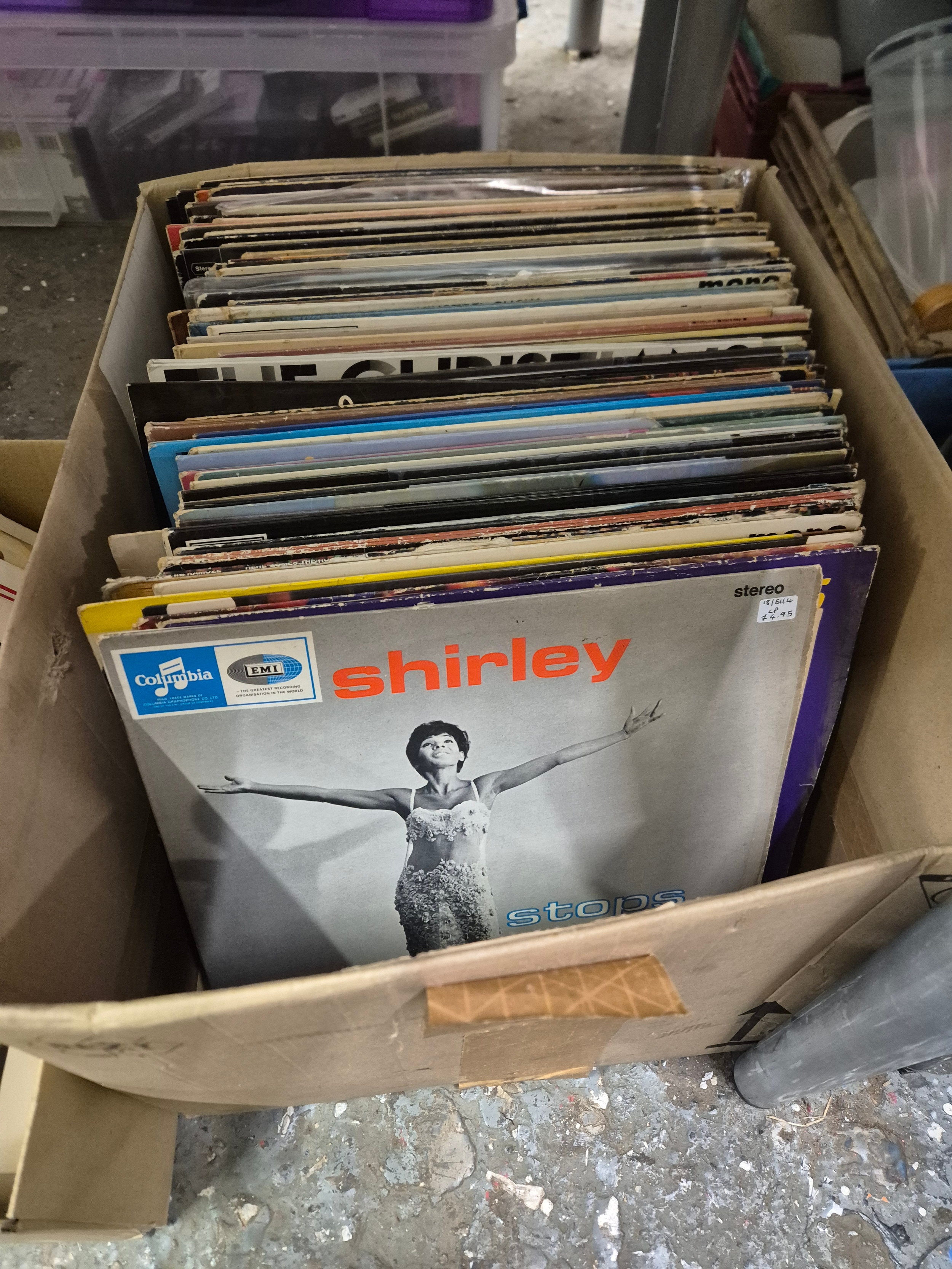 Large box of LP records to include Shirley Bassey, Klaus Wunderlich, Val Doonican, James Last, The Christians plus lots more