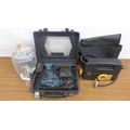 A Workzone 16V cordless drill, a Halfords rapid digital tyre inflator and a quantity of light fittings