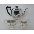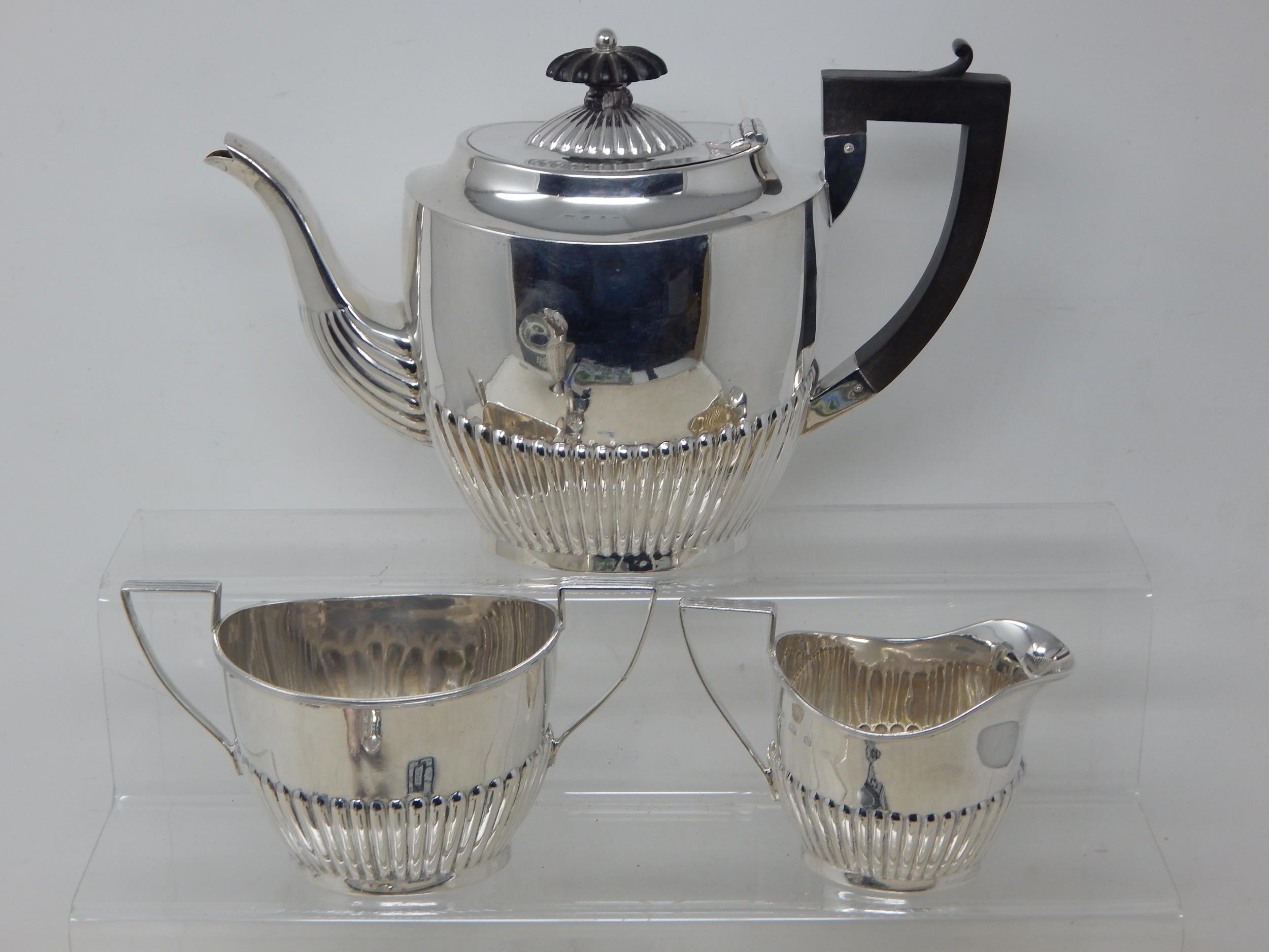 Victorian 3 Piece Silver Tea Set Comprising Teapot, Sugar Bowl & Milk Jug: Hallmarked Birmingham 1896 by Henry Bourne: Gross weight 562g