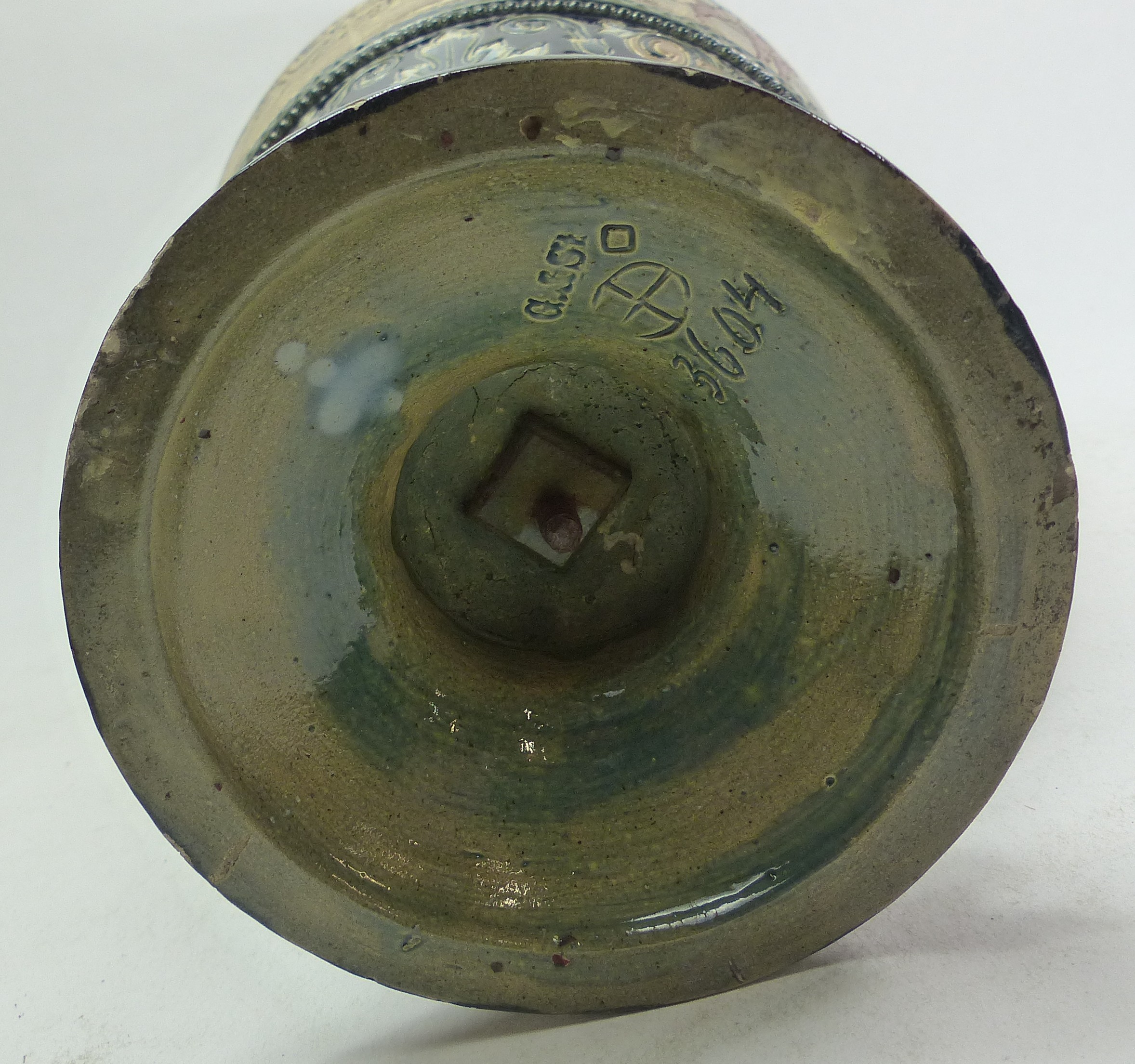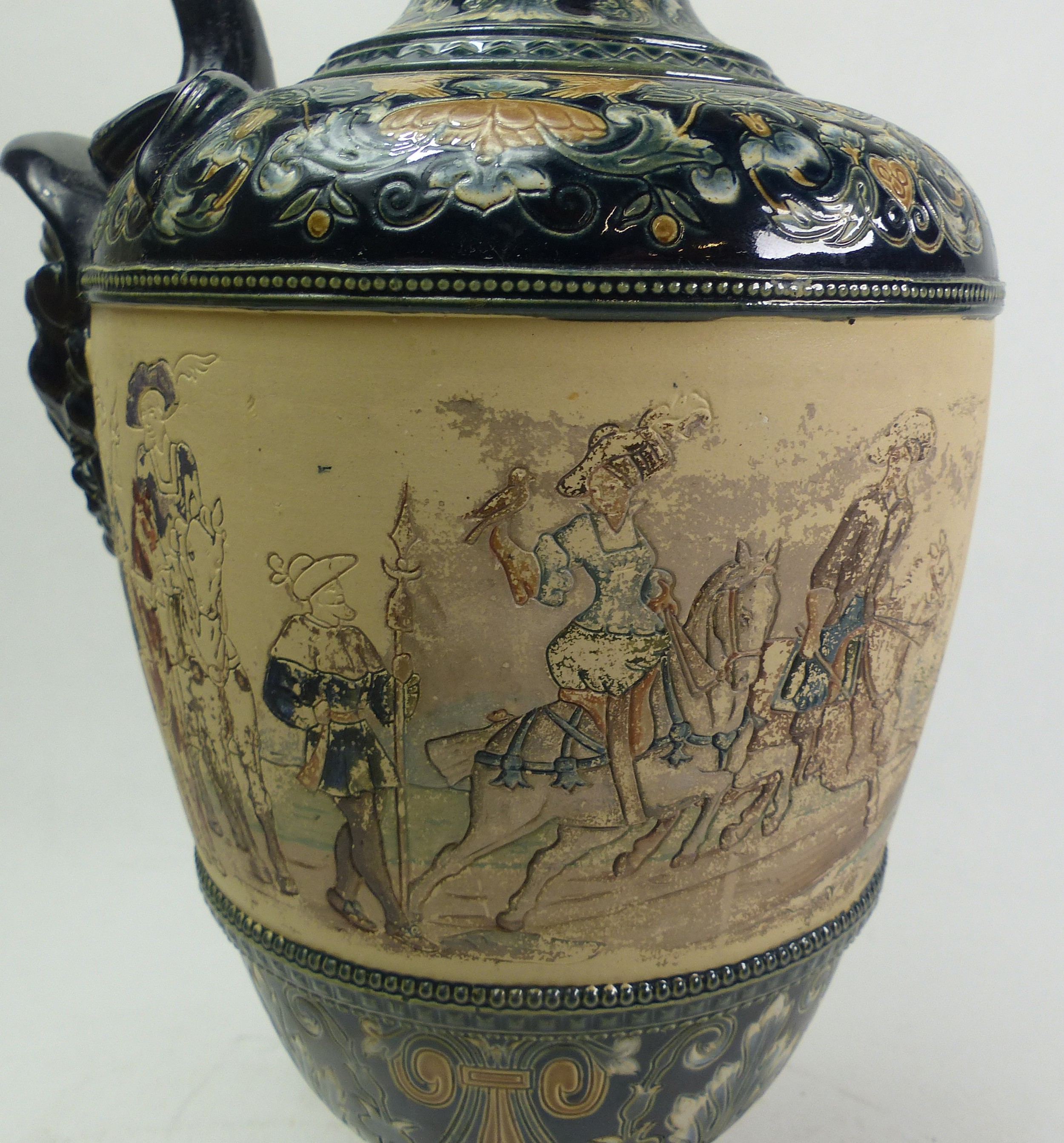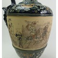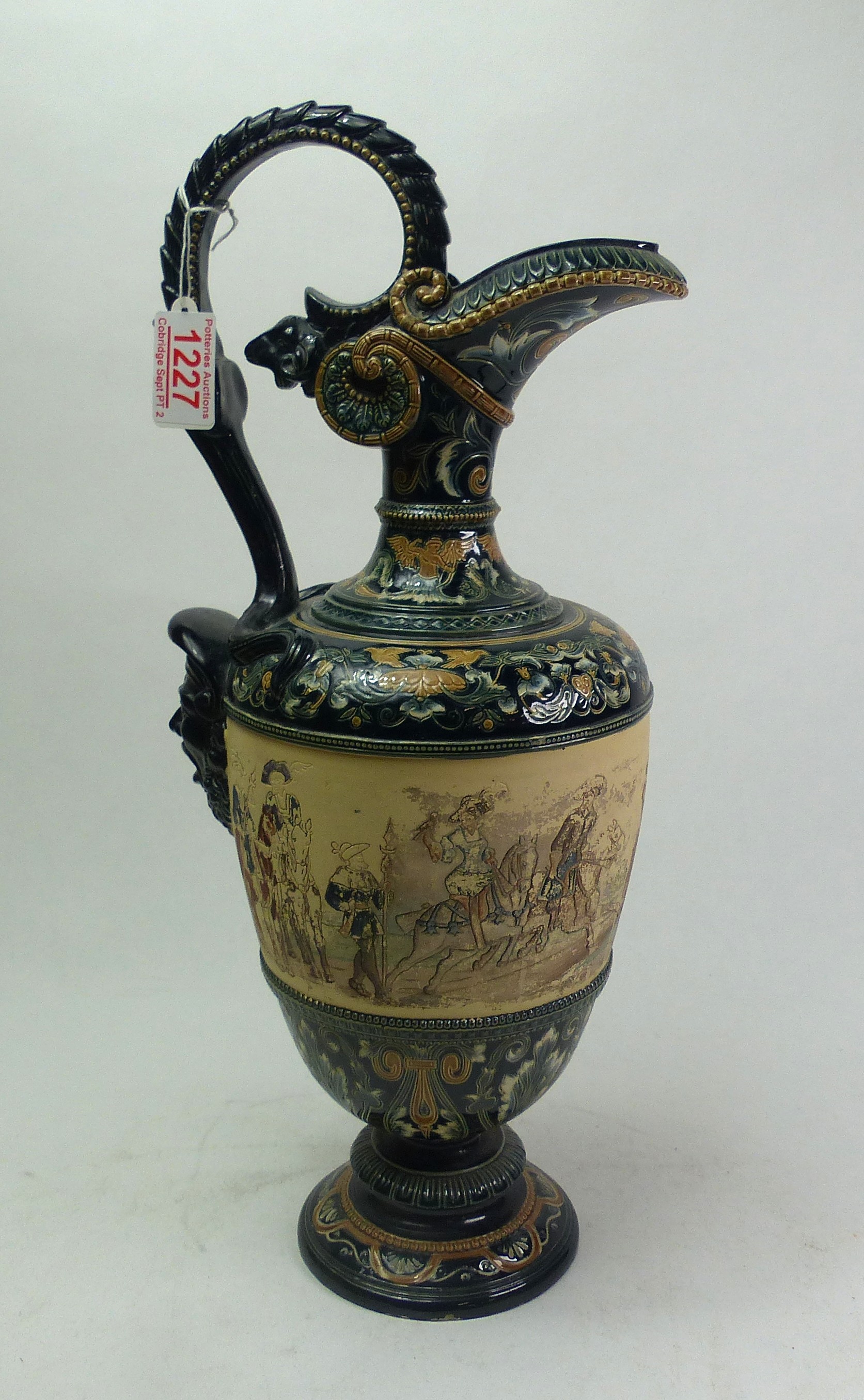 A Gerbing and Stephan Majolica ewer, traditionally decorated on a raised circular base, height 43cm.