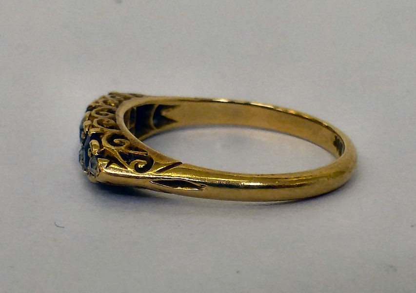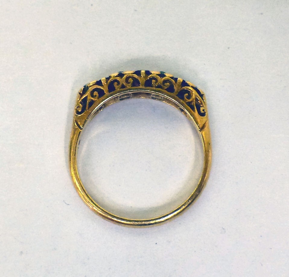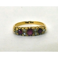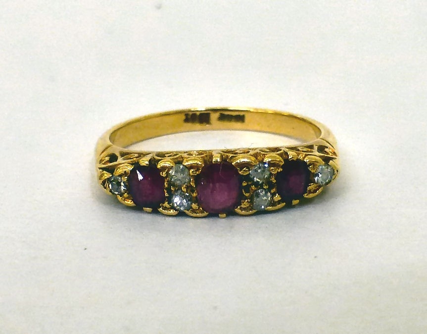 A yellow metal alternating ruby and diamond ring (approx. 4.2grms)