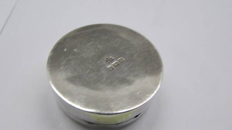 A hall marked silver pill box.