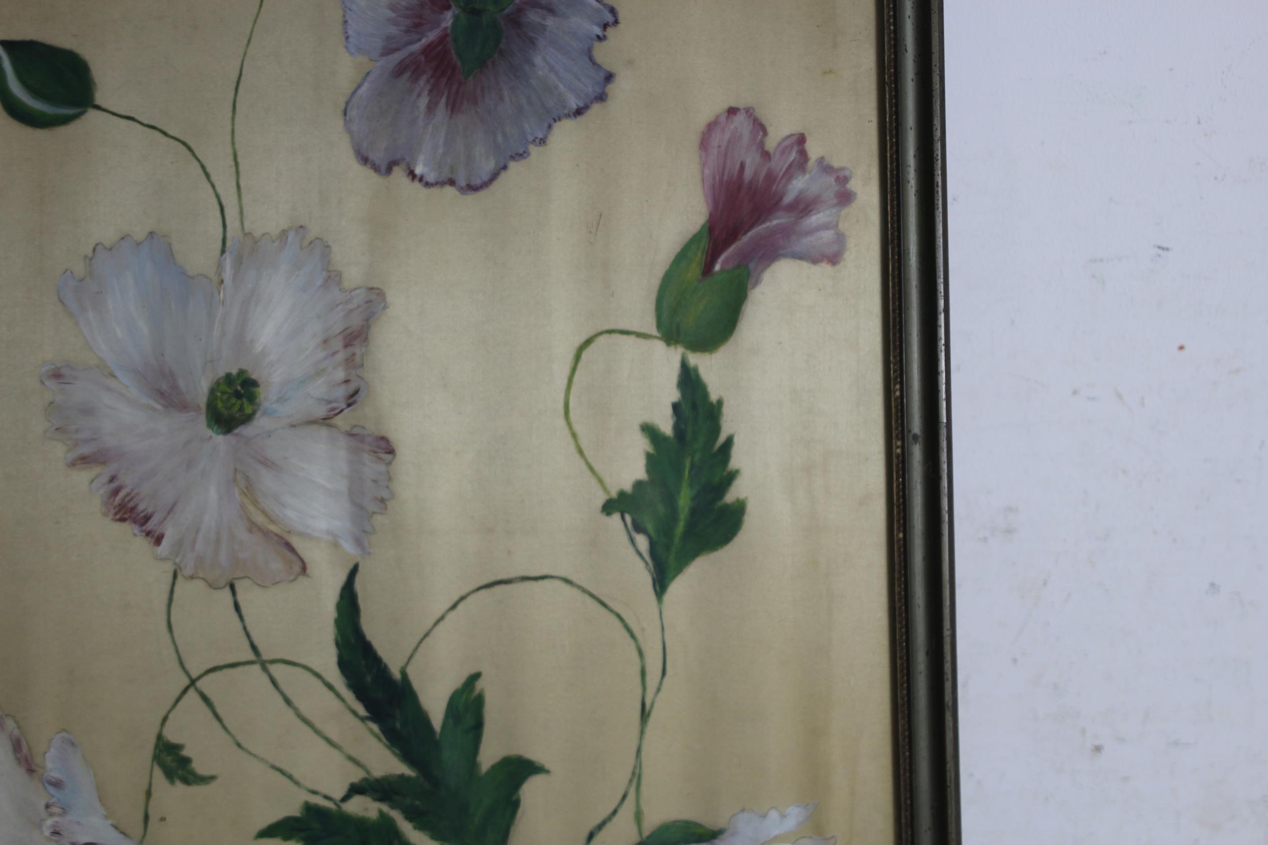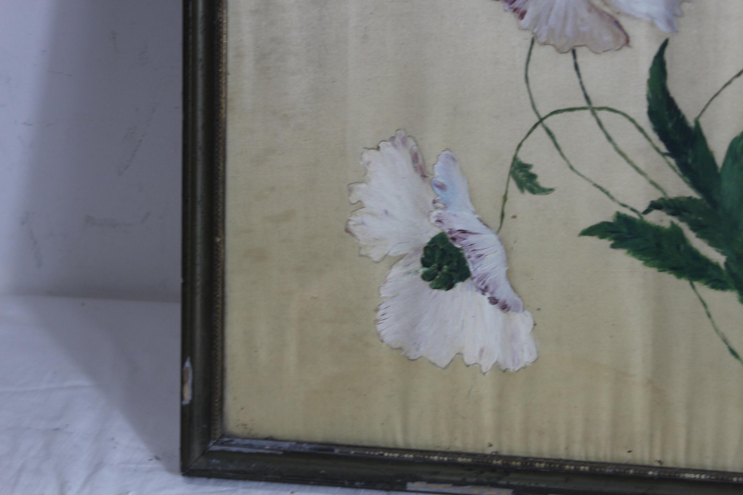 ANTIQUE PAINTING ON SILK OF FLOWERS 65 X 51CM